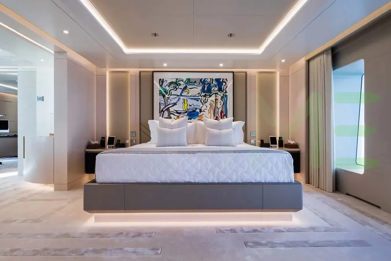 Her features include sauna, elevator, underwater lights, beach club, gym, WiFi and air conditioning.