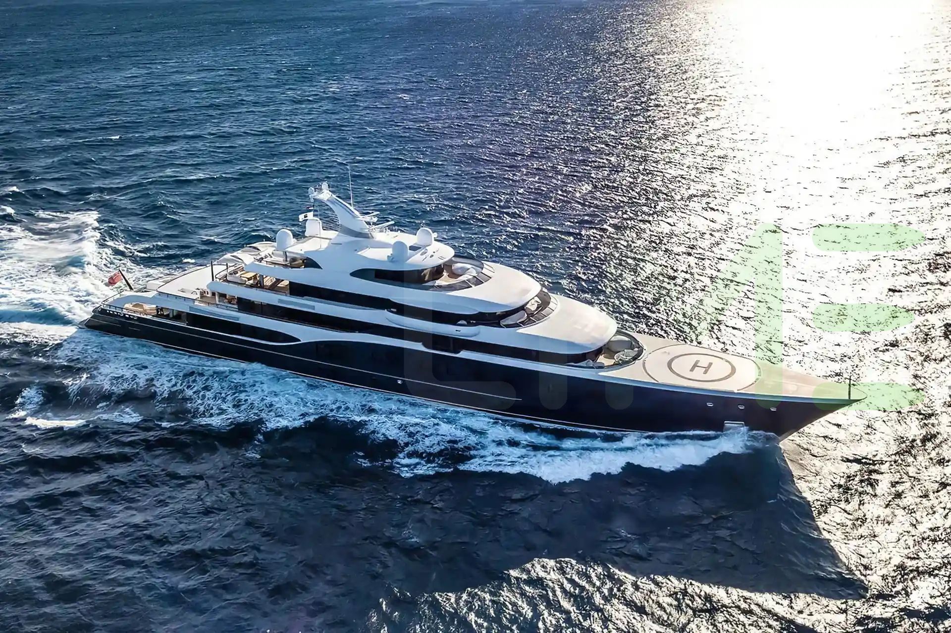 Her features include piano, steam room, spa, beauty salon, satellite communications, underwater lights, beach club, gym, deck jacuzzi, WiFi and air conditioning.