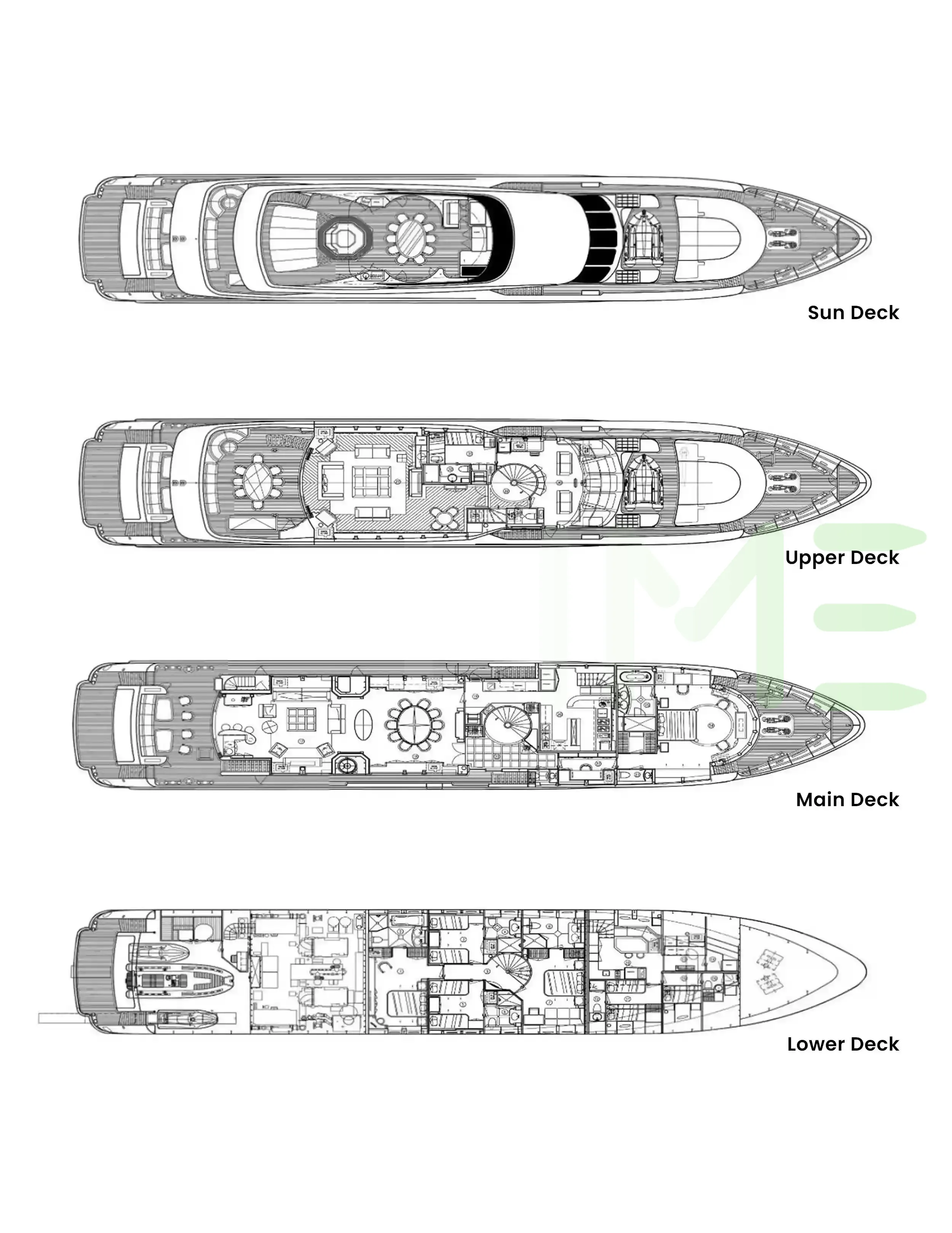 Request plans that include the layout of staterooms, guest areas, and outdoor spaces, as well as crew quarters and work areas.