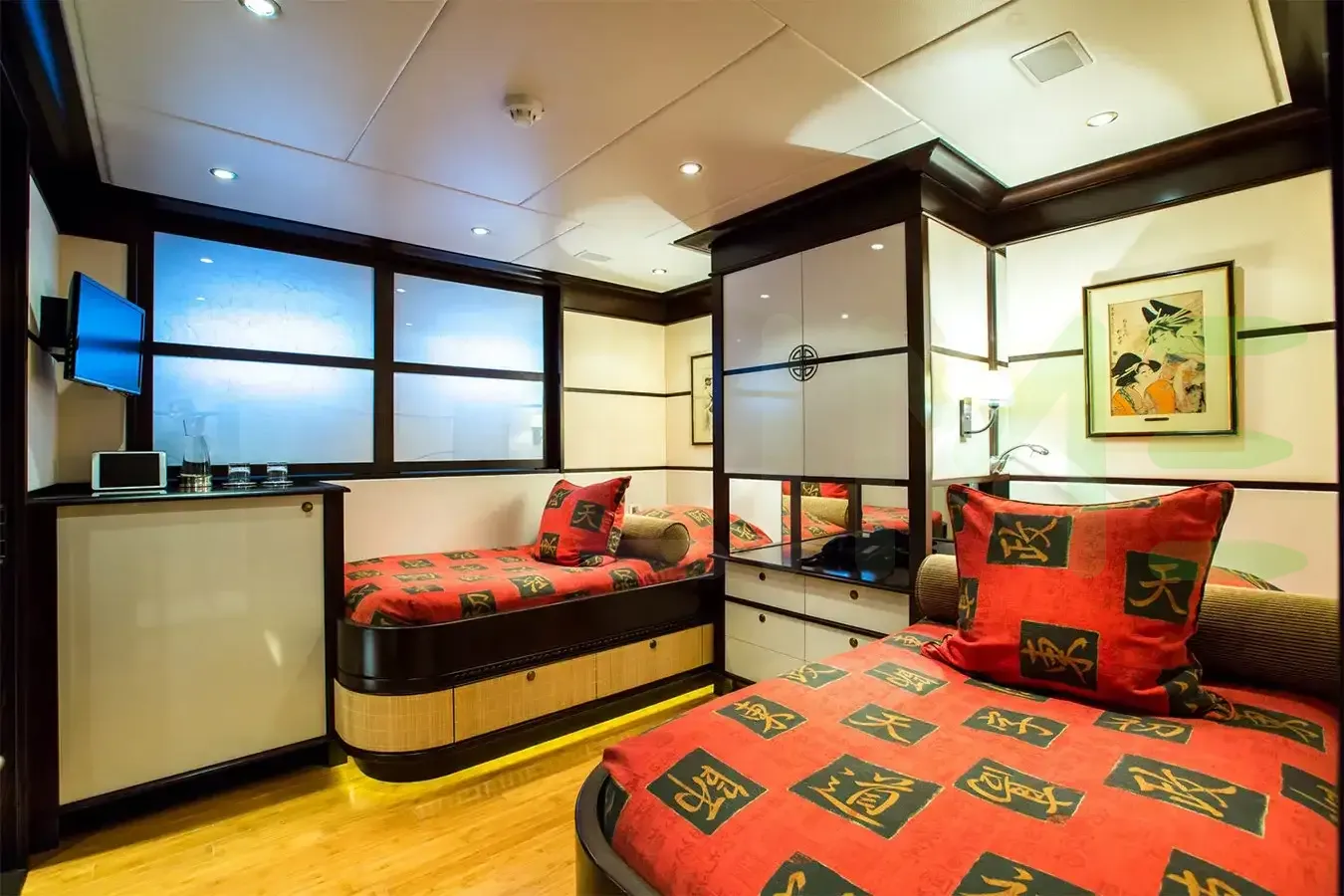 The styling of the THE LADY K yacht features exterior design by Omega Architects and interior design by Omega Architects. Up to 10 guests can be accommodated on board the superyacht THE LADY K in 5 staterooms. THE LADY K also has accommodations for 8 crew members, including the yacht’s captain.