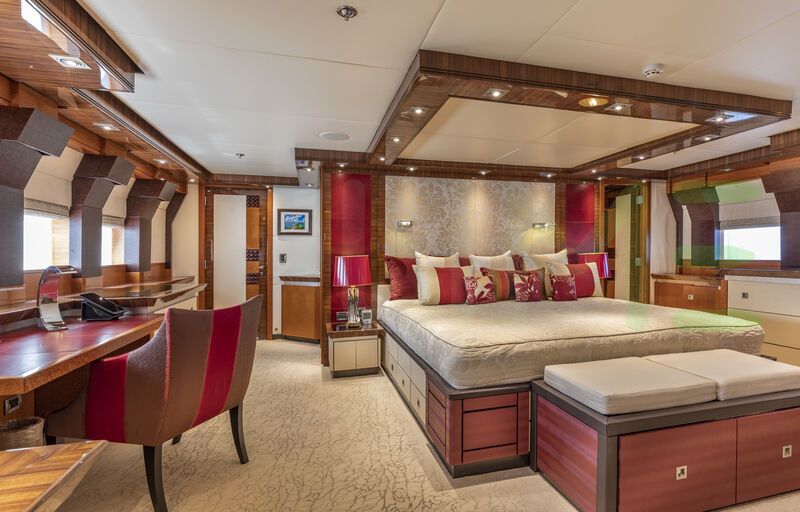 Up to 12 guests can be accommodated on board the superyacht THUNDER in 5 staterooms. THUNDER also has accommodations for 8 crew members, including the yacht’s captain.