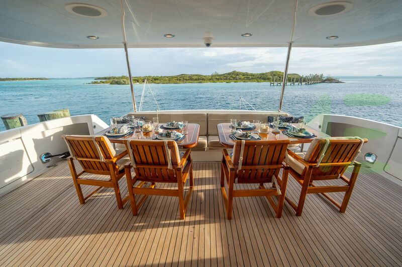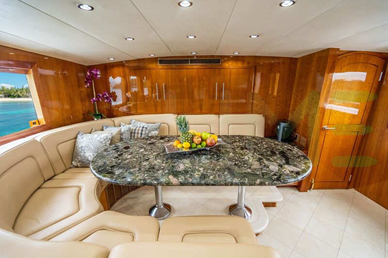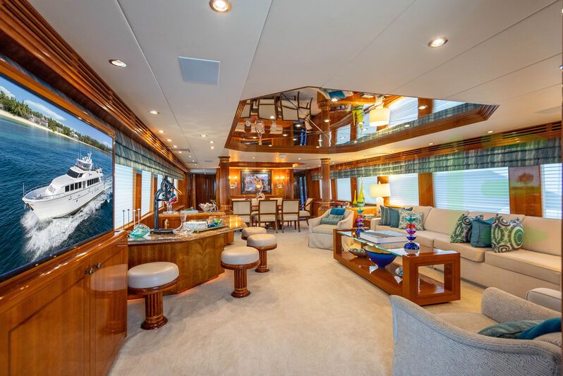 The styling of the TIE BREAKER yacht features exterior design by Jack Hargrave and interior design by Hatteras Yachts. TIE BREAKER also has accommodations for 3 crew members, including the yacht’s captain.