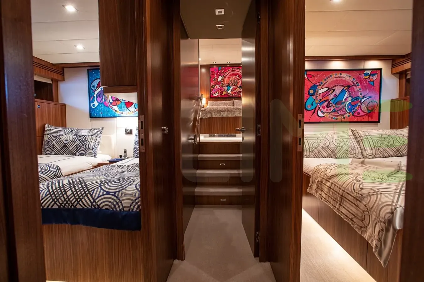 Up to 8 guests can be accommodated on board the superyacht WALINDI in 4 staterooms. WALINDI also has accommodations for 5 crew members, including the yacht’s captain.