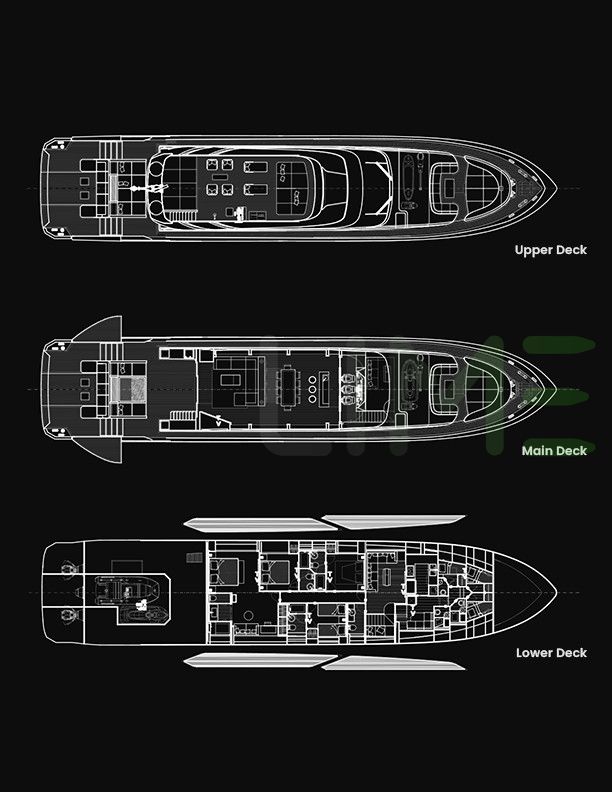 Request plans that include the layout of staterooms, guest areas, and outdoor spaces, as well as crew quarters and work areas.