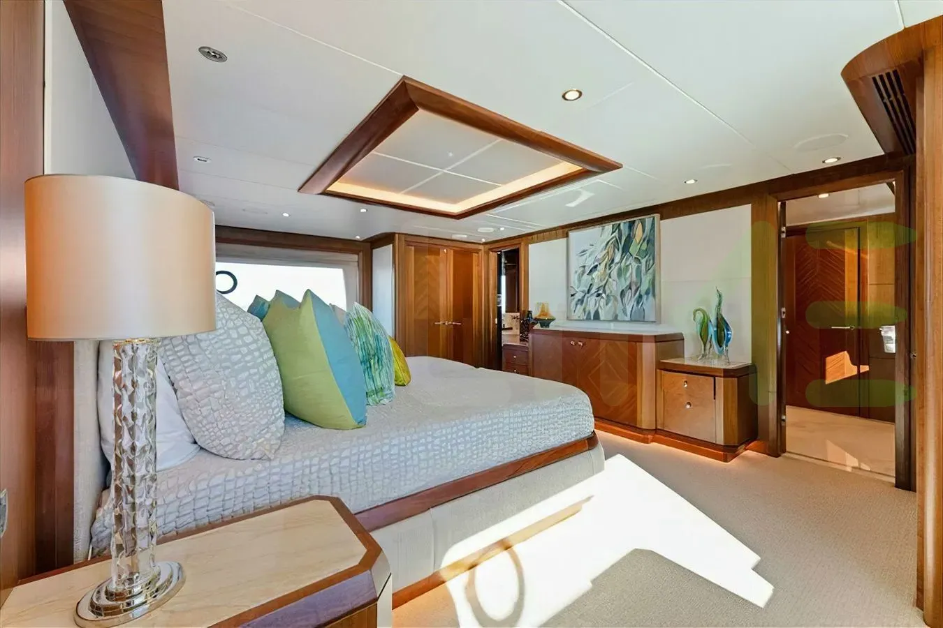 Her features include underwater lights, beach club, WiFi and air conditioning.