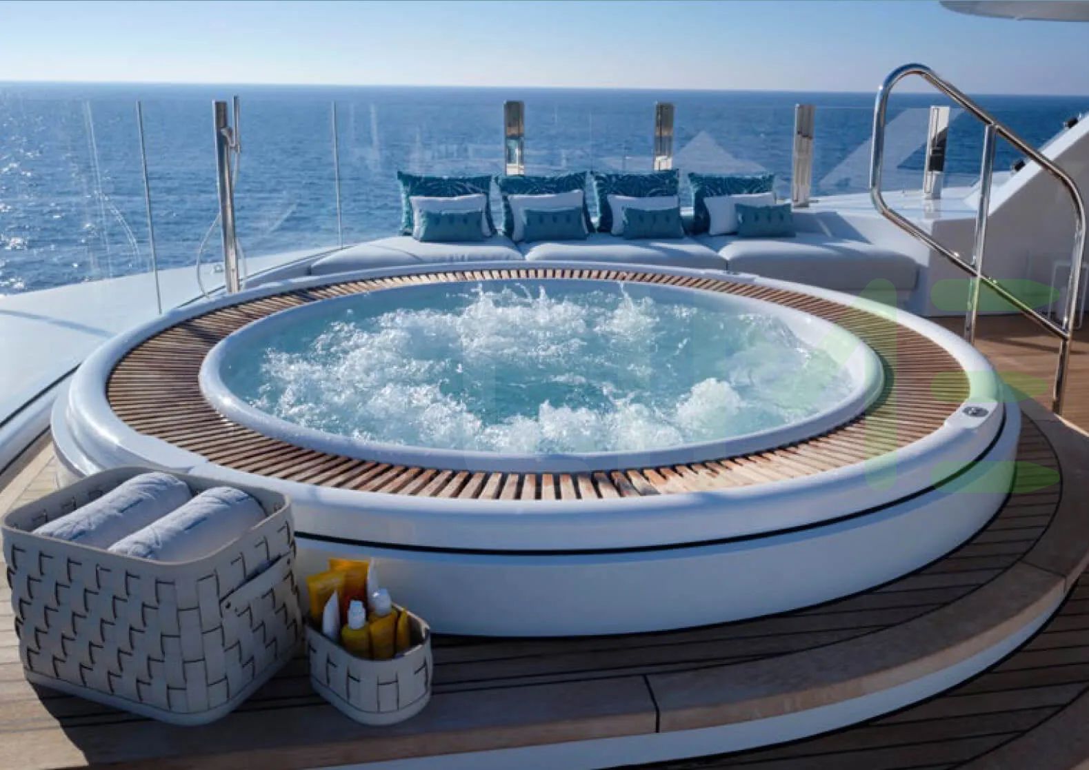 Her features include a spa, sauna, elevator, beach club, deck jacuzzi, WiFi and air conditioning.