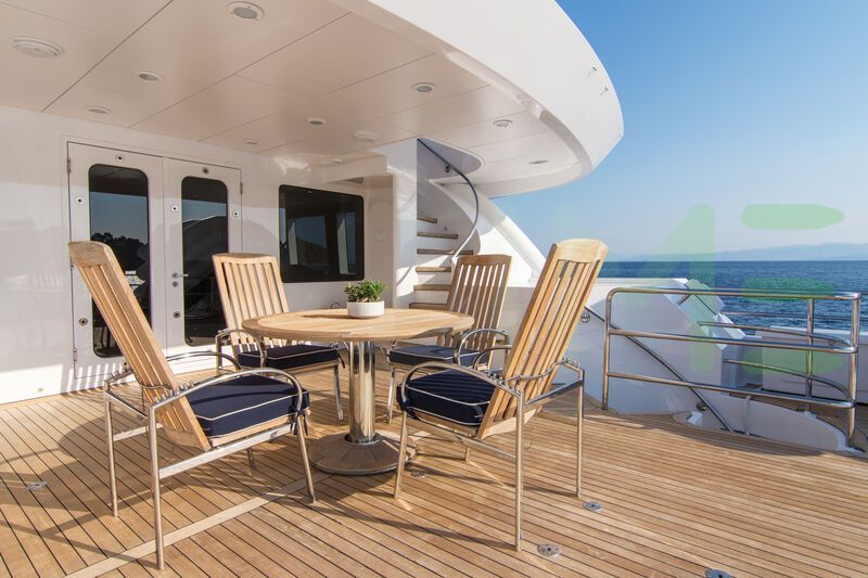 Constructed with a Aluminium hull, and Aluminium superstructure, she offers ample exterior and interior space.