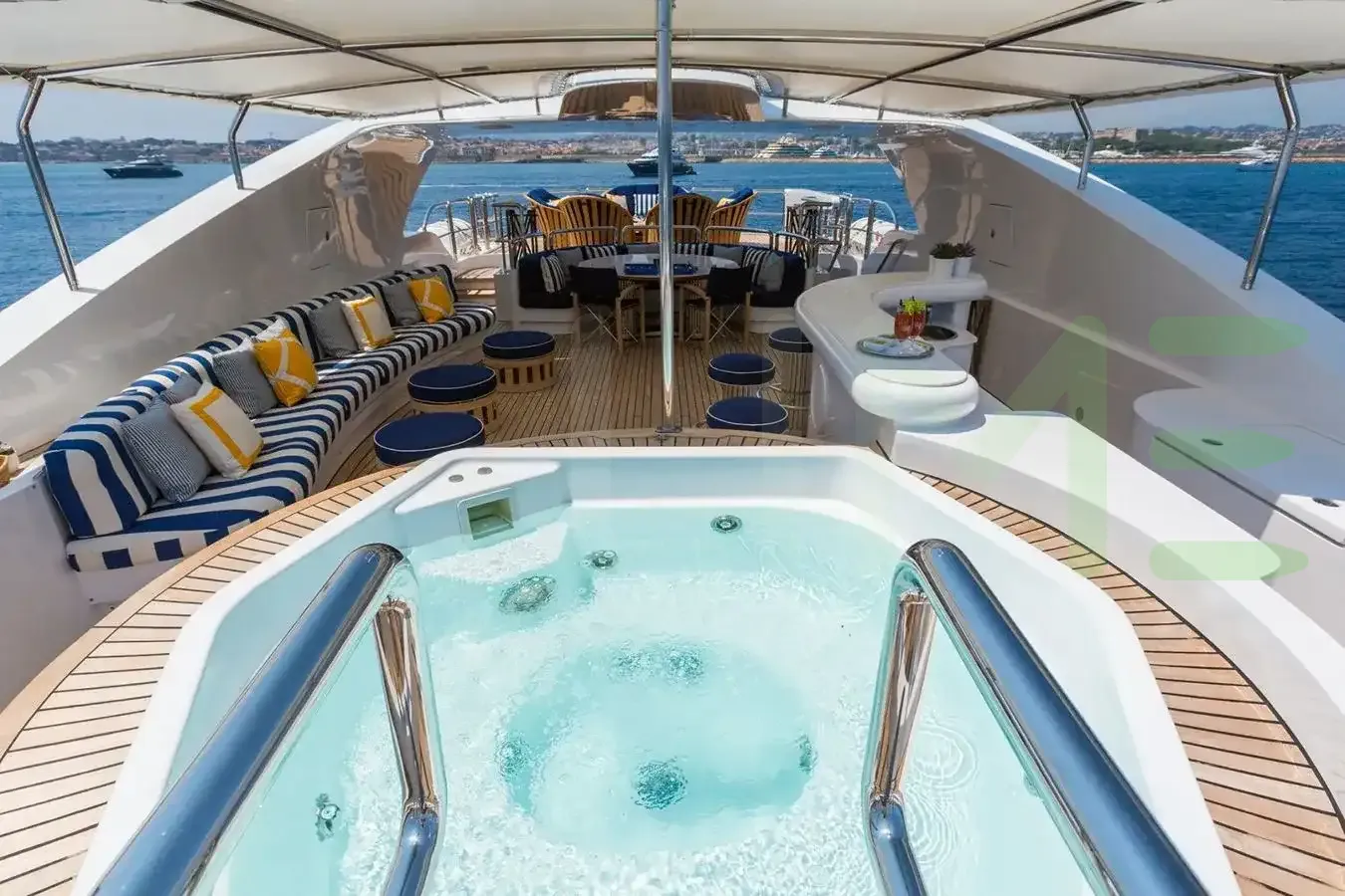 A charter on Air is comfortable and convenient thanks to the provided amenities, notably a gym with all the latest equipment to maintain your fitness routine. Soak up the bubbles in style in the deck jacuzzi.