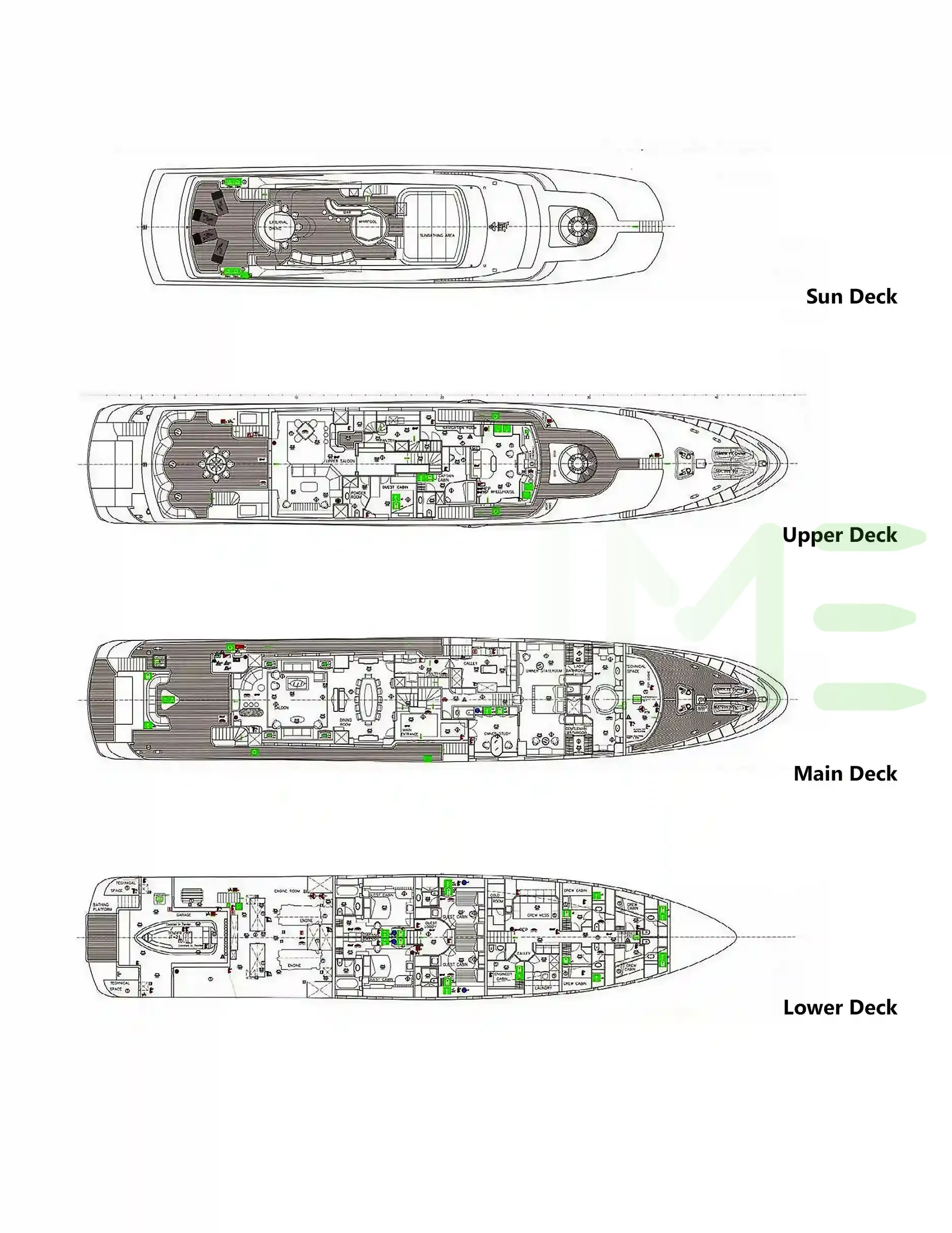 Request plans that include the layout of staterooms, guest areas, and outdoor spaces, as well as crew quarters and work areas.