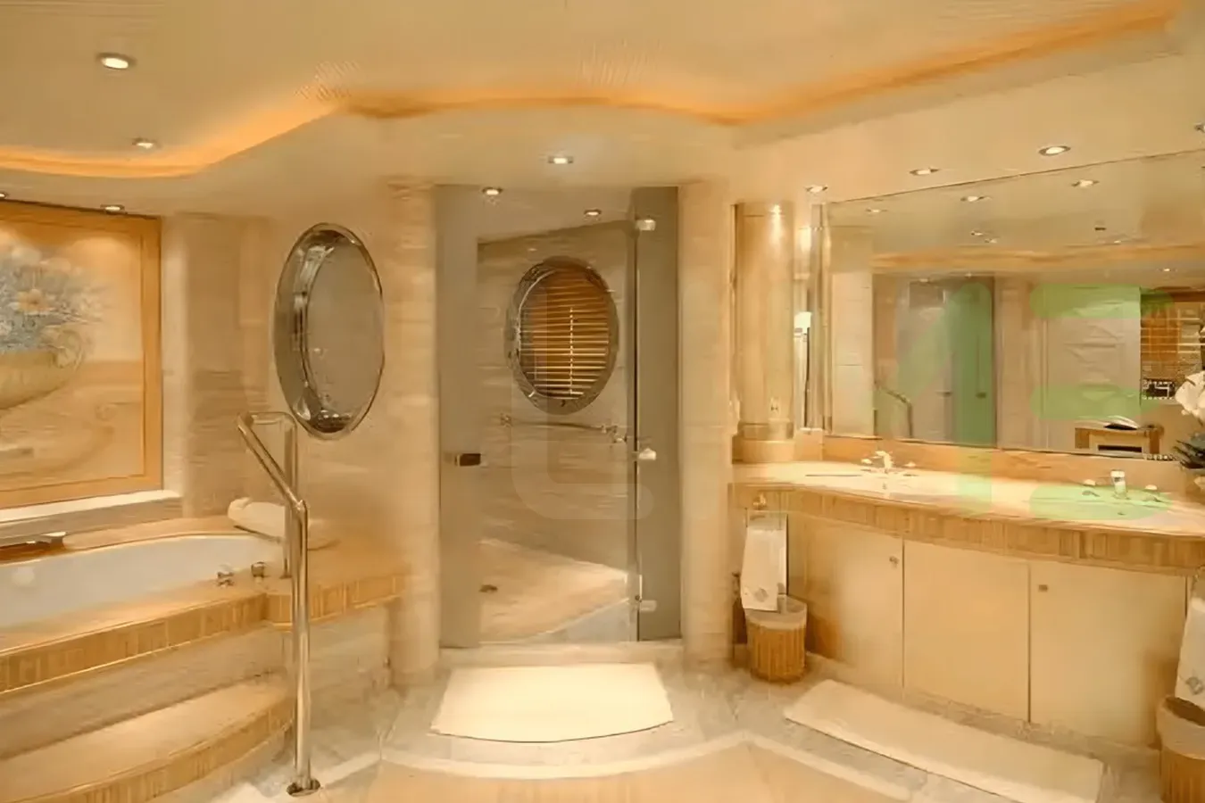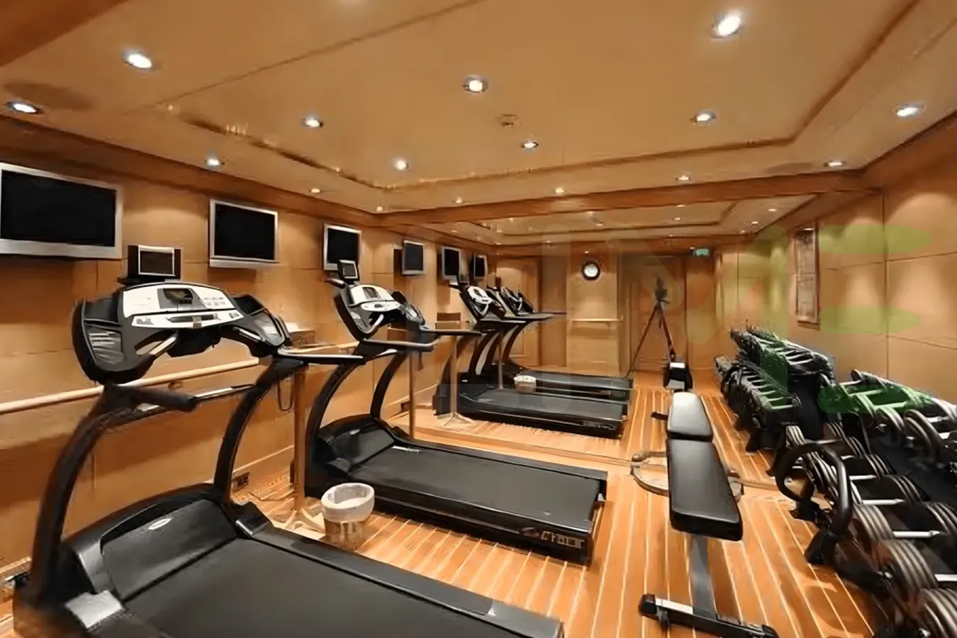 Her features include a beauty salon, elevator, gym and air conditioning.