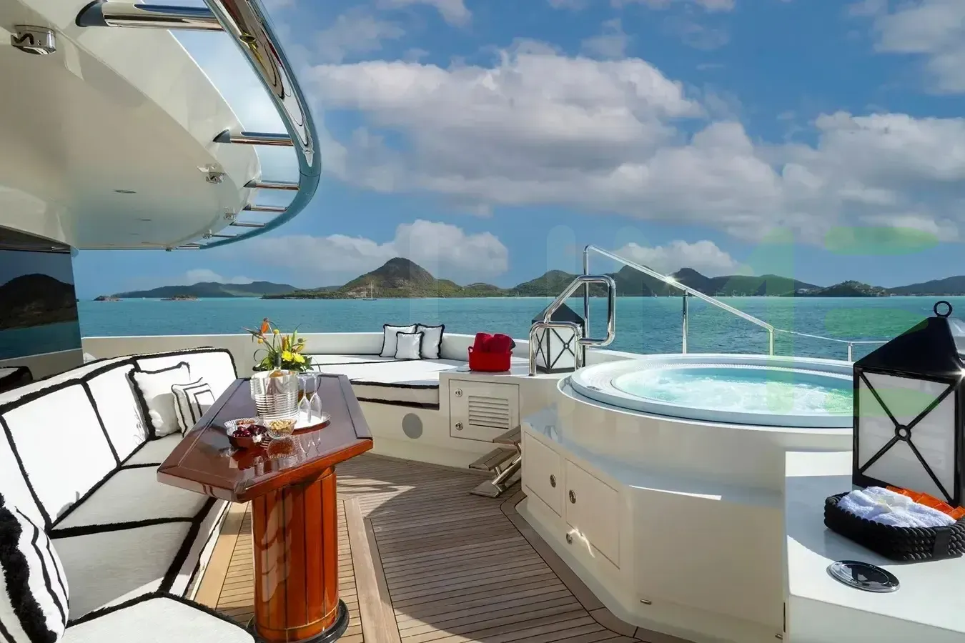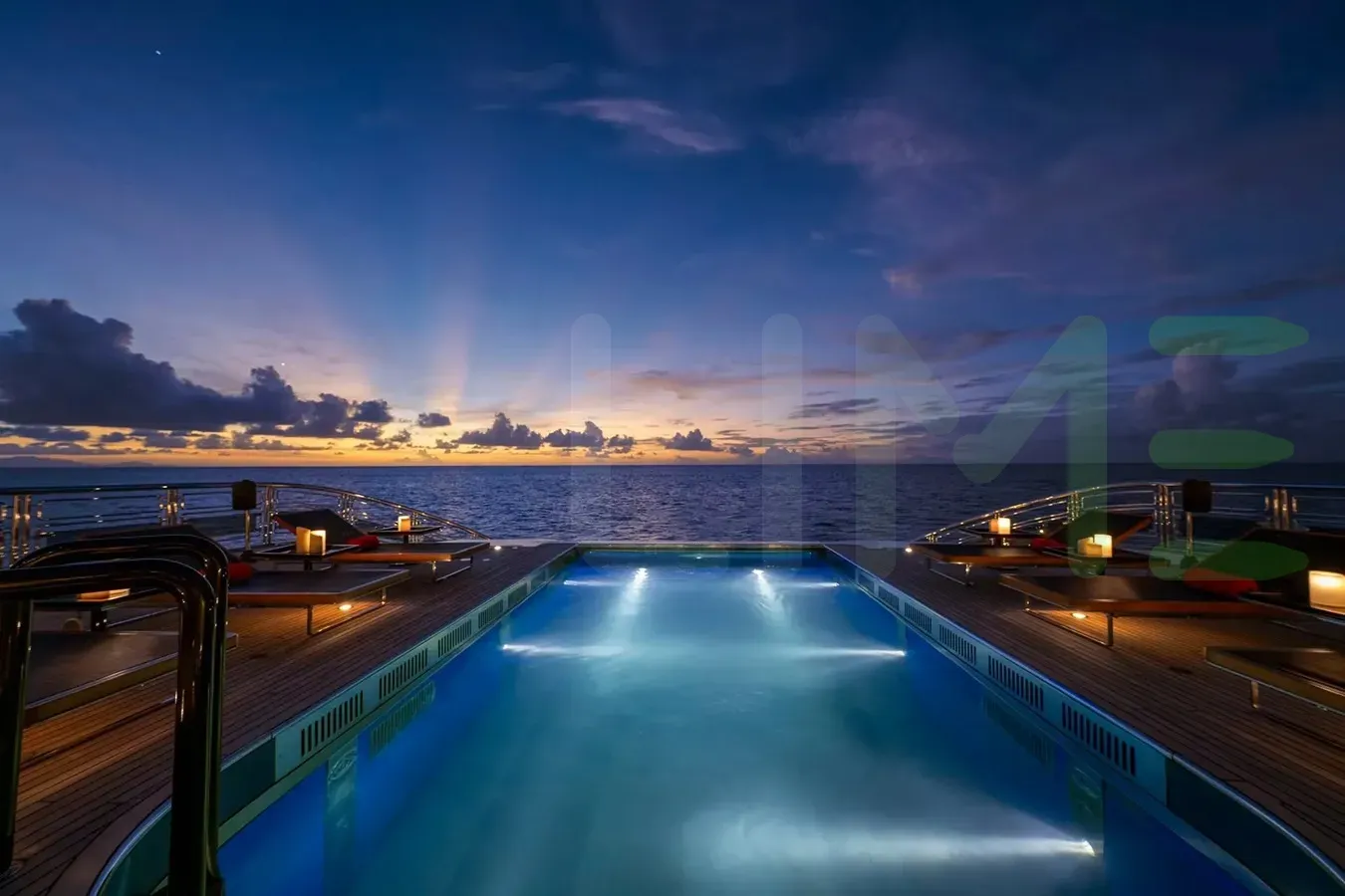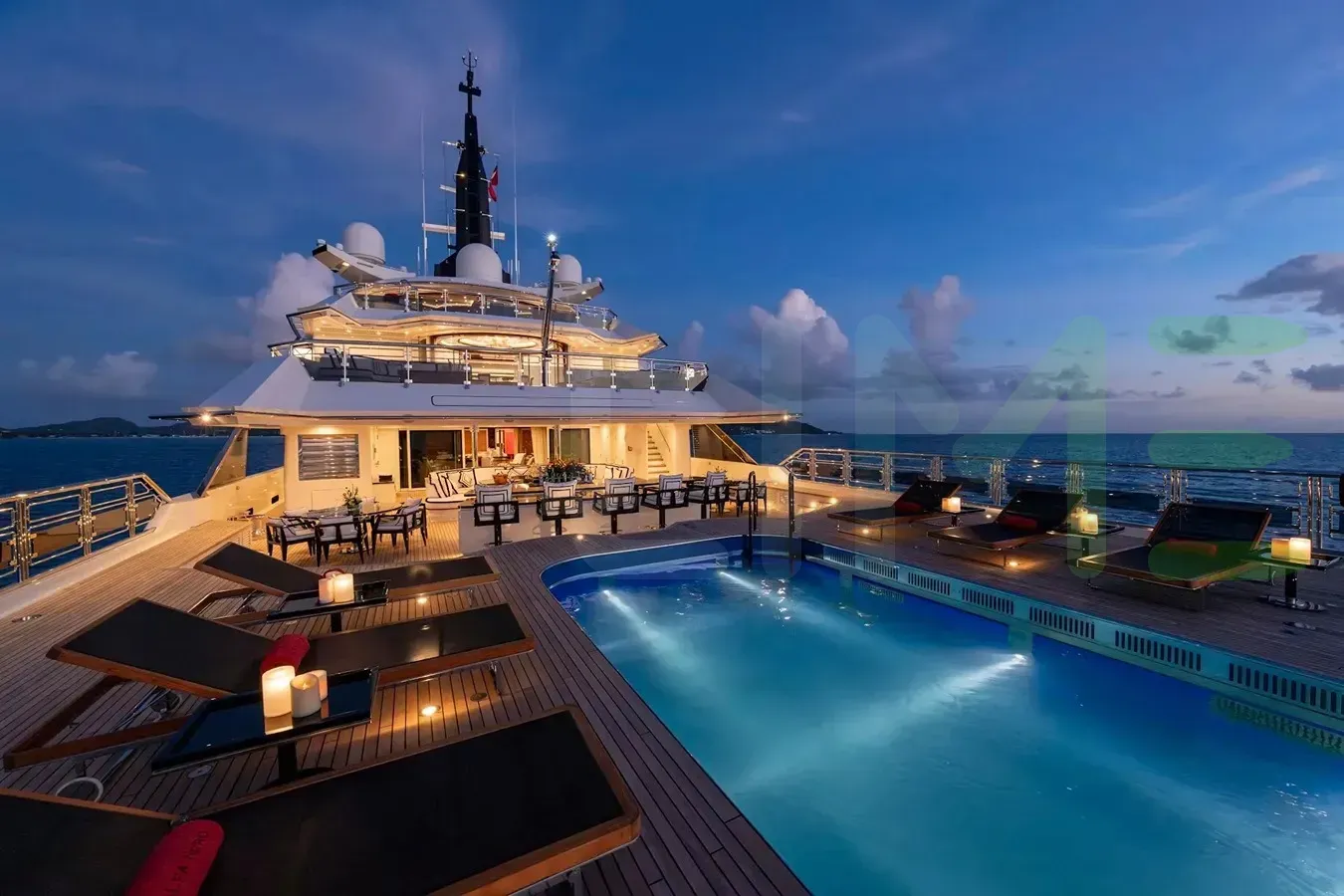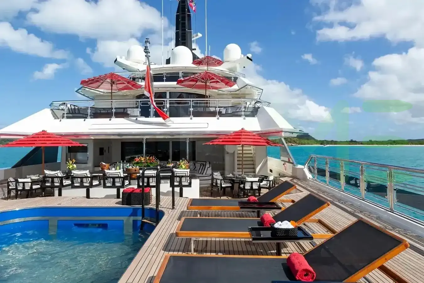 Her features include a dancefloor, beauty salon, spa, beauty salon, elevator, beach club, gym, deck jacuzzi, WiFi and air conditioning.