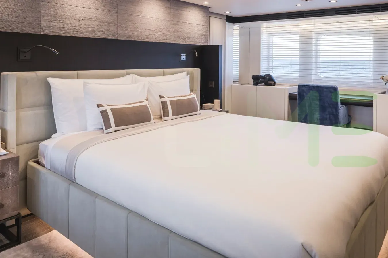 The styling of the ALTAIR yacht features exterior design by Omega Architects and interior design by Wolterink Design. Up to 12 guests can be accommodated on board the superyacht ALTAIR in 6 staterooms. ALTAIR also has accommodations for 11 crew members, including the yacht’s captain.