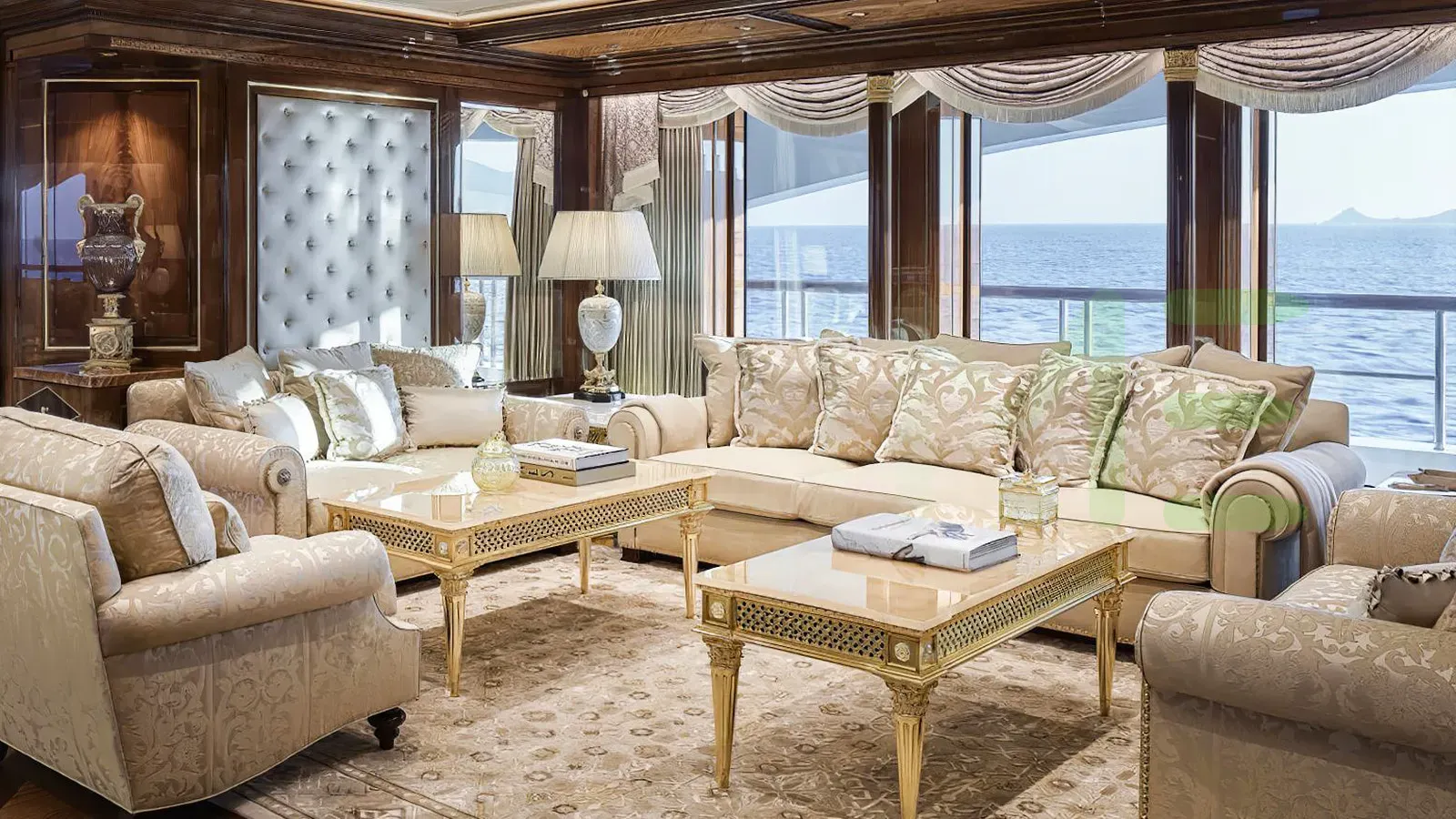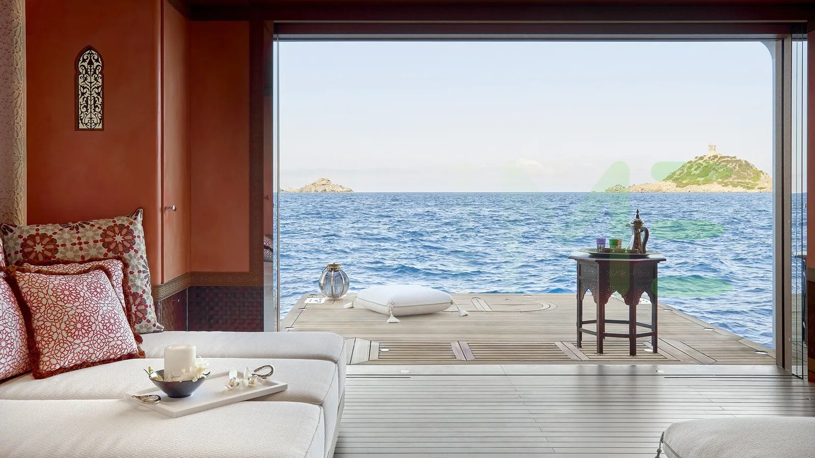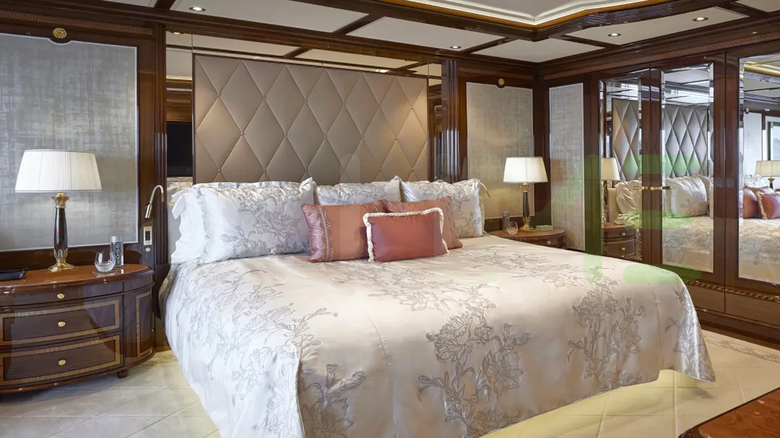 Her features include separate crew passageway, beauty salon, spa, beauty salon, elevator, underwater lights, gym, WiFi and air conditioning.