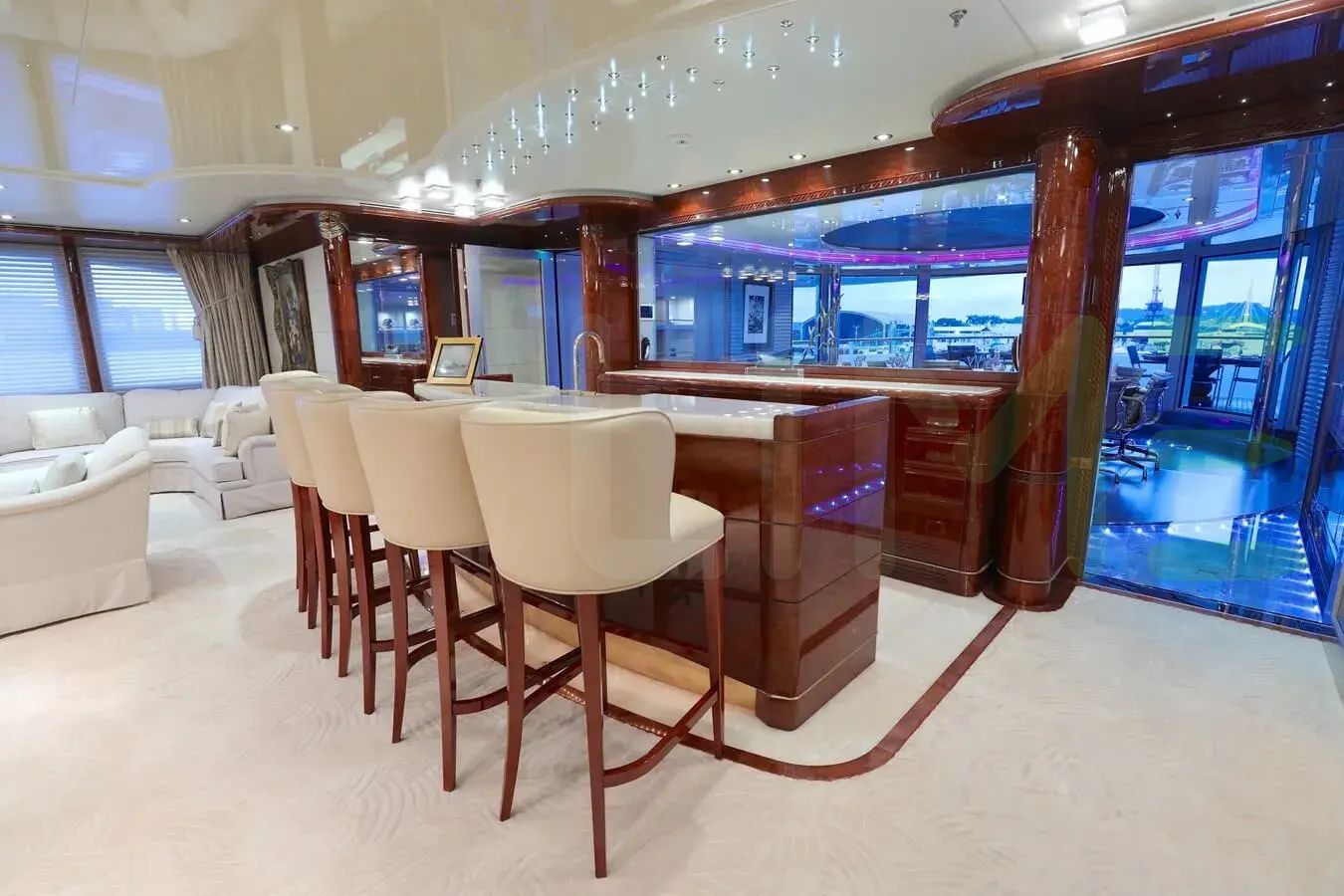 Her features include a spa, beauty salon, elevator, beach club, gym and air conditioning.