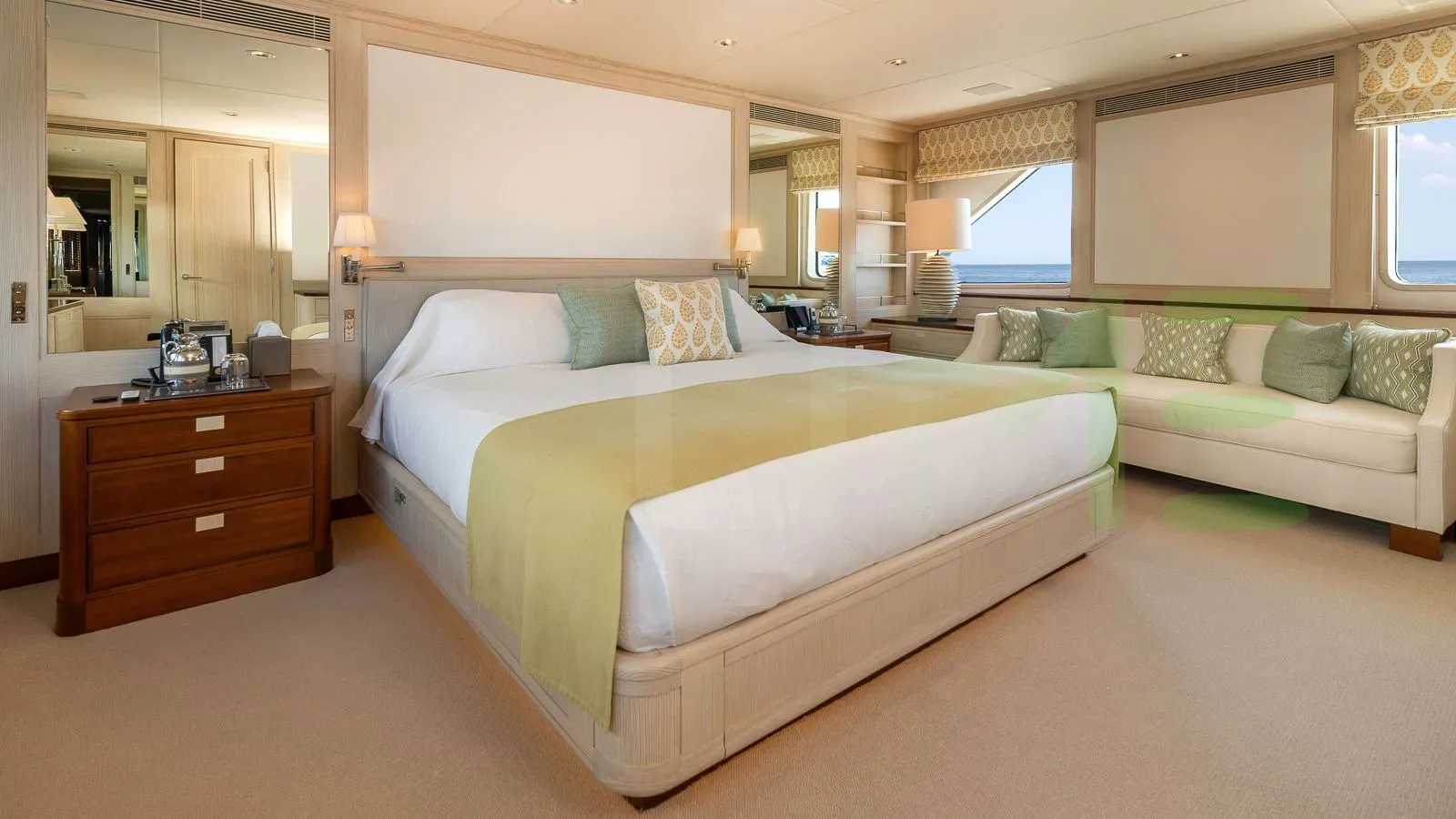 The styling of the ANCALLIA yacht features exterior design by De Voogt Naval Architects and interior design by Colefax and Fowler. Up to 12 guests can be accommodated on board the superyacht ANCALLIA in 7 staterooms. ANCALLIA also has accommodations for 9 crew members, including the yacht’s captain.