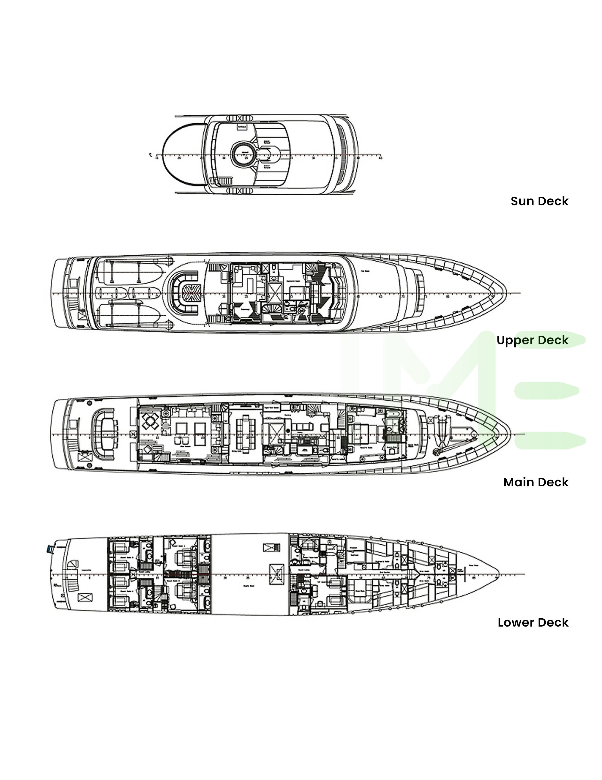 Request plans which include the layout of staterooms, guest areas, and outdoor spaces, as well as crew quarters and working spaces.