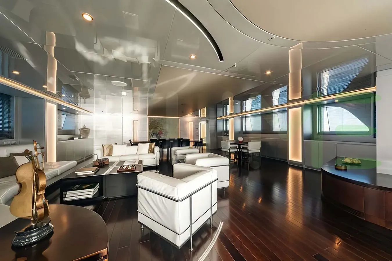 The styling of the ANTALIS yacht features exterior design by Giugiaro Design and interior design by Della Role Design. Up to 10 guests can be accommodated on board the superyacht ANTALIS in 5 staterooms. ANTALIS also has accommodations for 10 crew members, including the yacht’s captain.