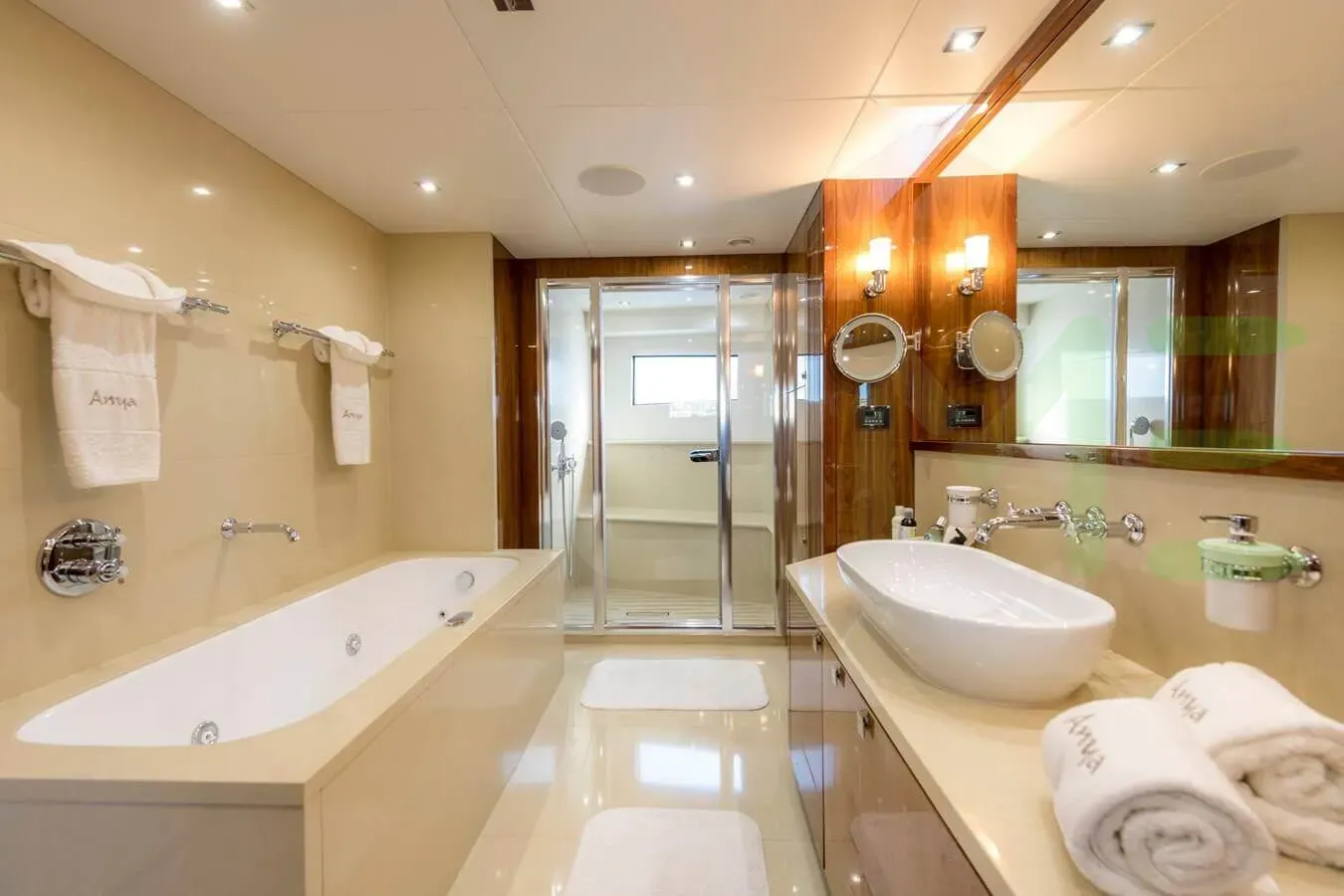 Up to 10 guests can be accommodated on board the superyacht ANYA in 5 staterooms. ANYA also has accommodations for 8 crew members, including the yacht’s captain.