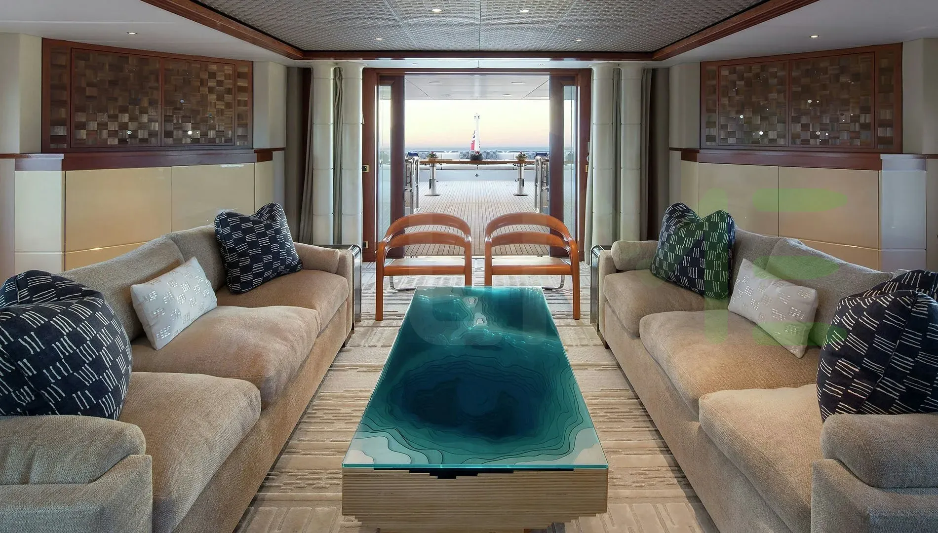 To respect the privacy of the AO yacht owner and guests, the AO yacht location is privately available to prospective clients only. For details about the current location, winter and summer cruising regions, and the availability of the AO yacht for charter, along with additional insider information about alternative yachts similar to AO, contact a LIME yacht charter broker for a full yacht analysis.