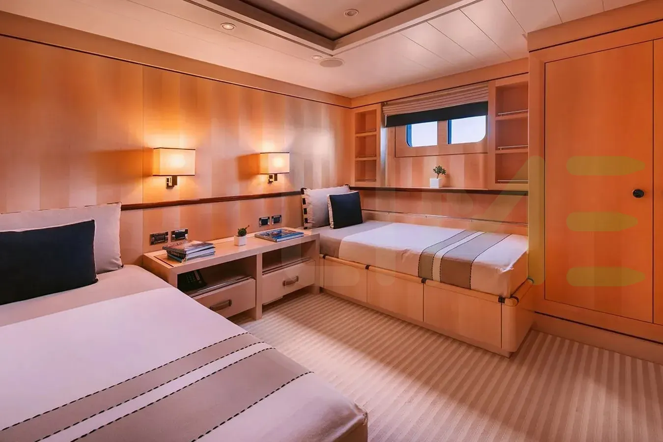 The styling of the ARIELA yacht features exterior design by Tim Heywood Design Ltd. and interior design by Studio Laura Sessa. Up to 12 guests can be accommodated on board the superyacht ARIELA in 6 staterooms. ARIELA also has accommodations for 14 crew members, including the yacht’s captain.