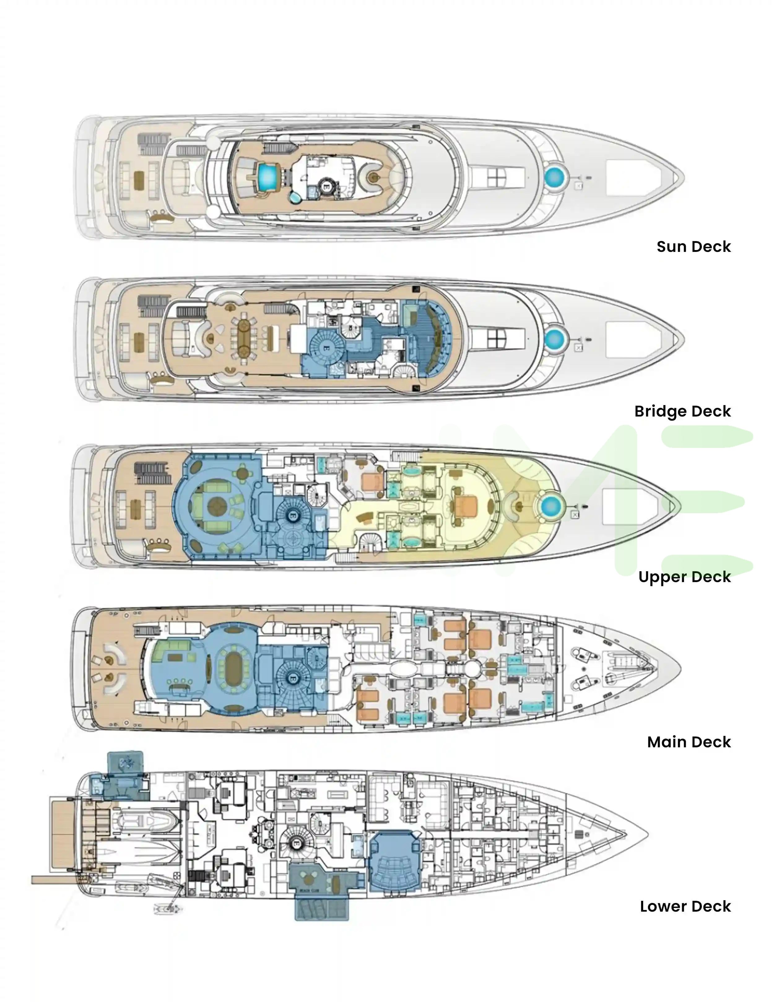 Request plans that include the layout of staterooms, guest areas, and outdoor spaces, as well as crew quarters and work areas.