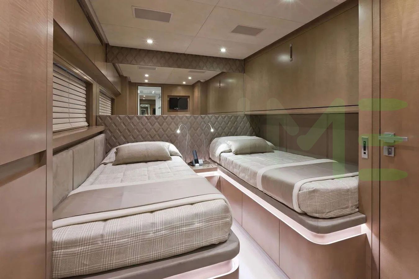 Up to 8 guests can be accommodated on board the superyacht ARMEEC in 4 staterooms. ARMEEC also has accommodations for 4 crew members, including the yacht’s captain.