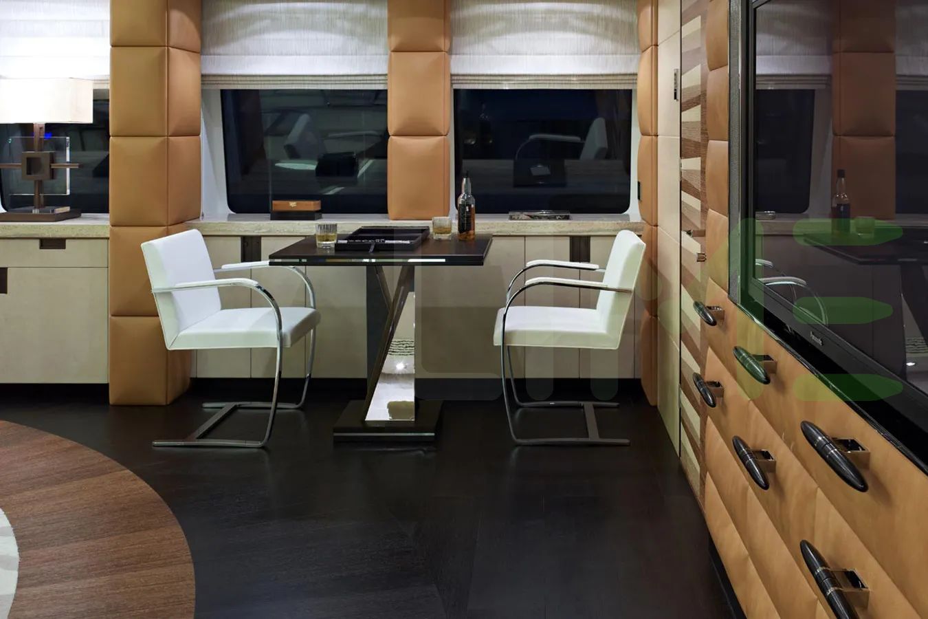 - Chic skylounge with onyx bar and large television screen