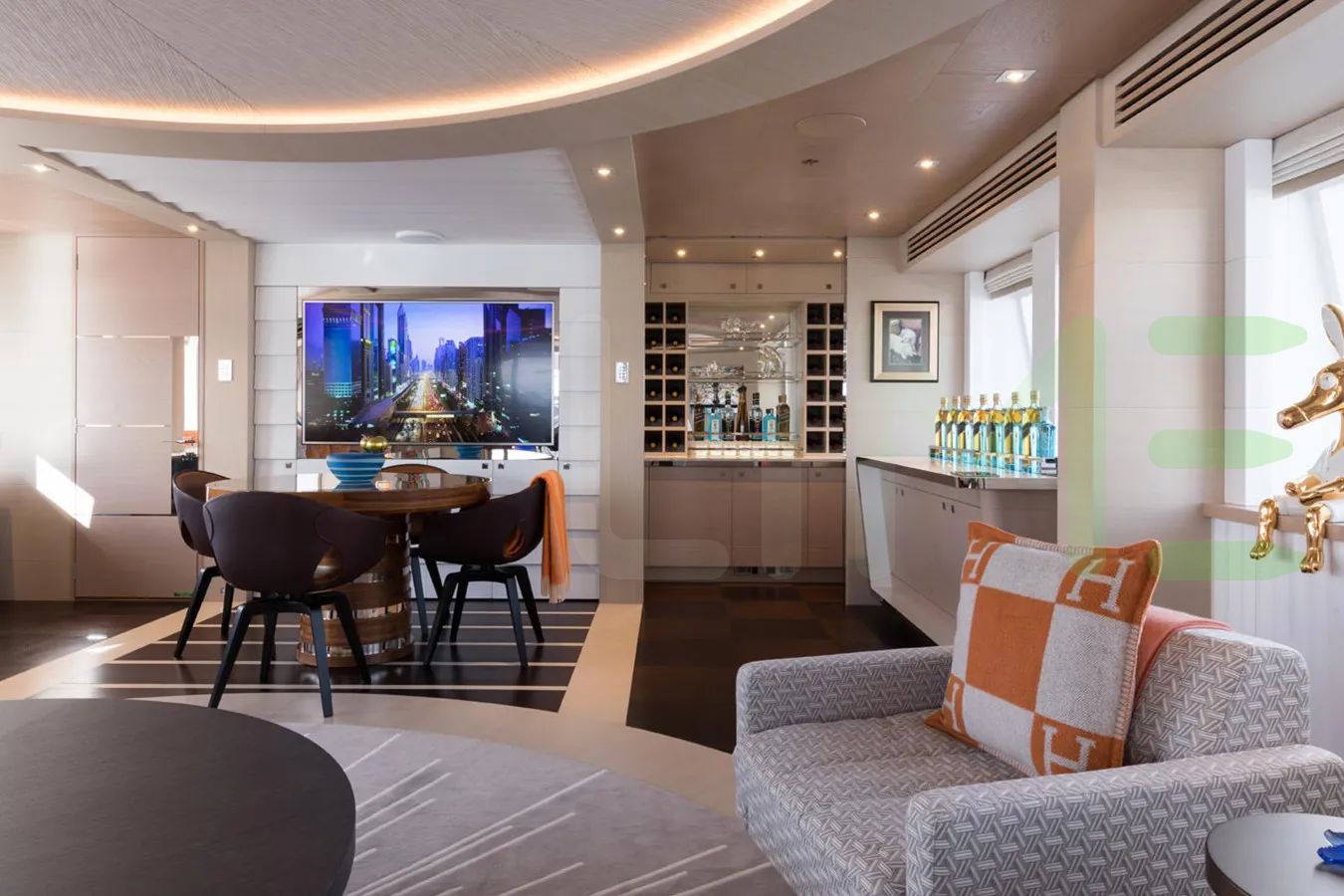 The styling of the ARTISA yacht features exterior design by Omega Architects and interior design by Bannenberg & Rowell Design. Up to 10 guests can be accommodated on board the superyacht ARTISA in 5 staterooms. ARTISA also has accommodations for 9 crew members, including the yacht’s captain.