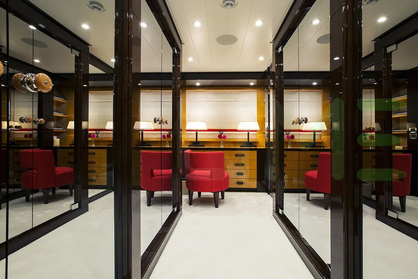 Up to 12 guests can be accommodated on board the superyacht ASTRA in 5 staterooms. ASTRA also has accommodations for 13 crew members, including the yacht’s captain.
