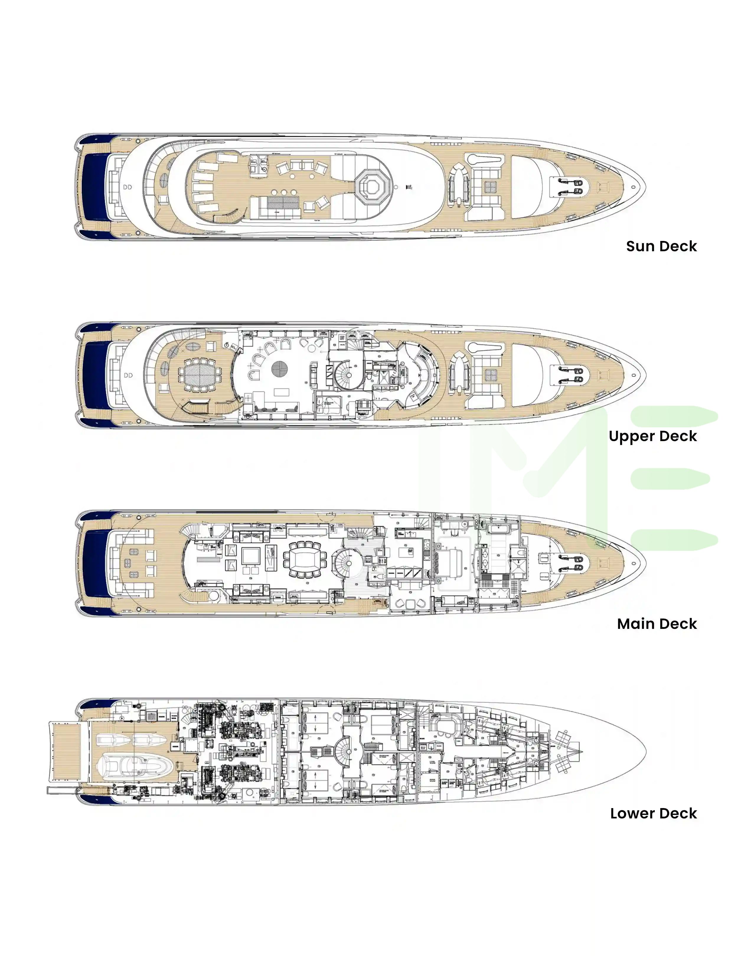 Request plans which include the layout of staterooms, guest areas, and outdoor spaces, as well as crew quarters and working spaces.