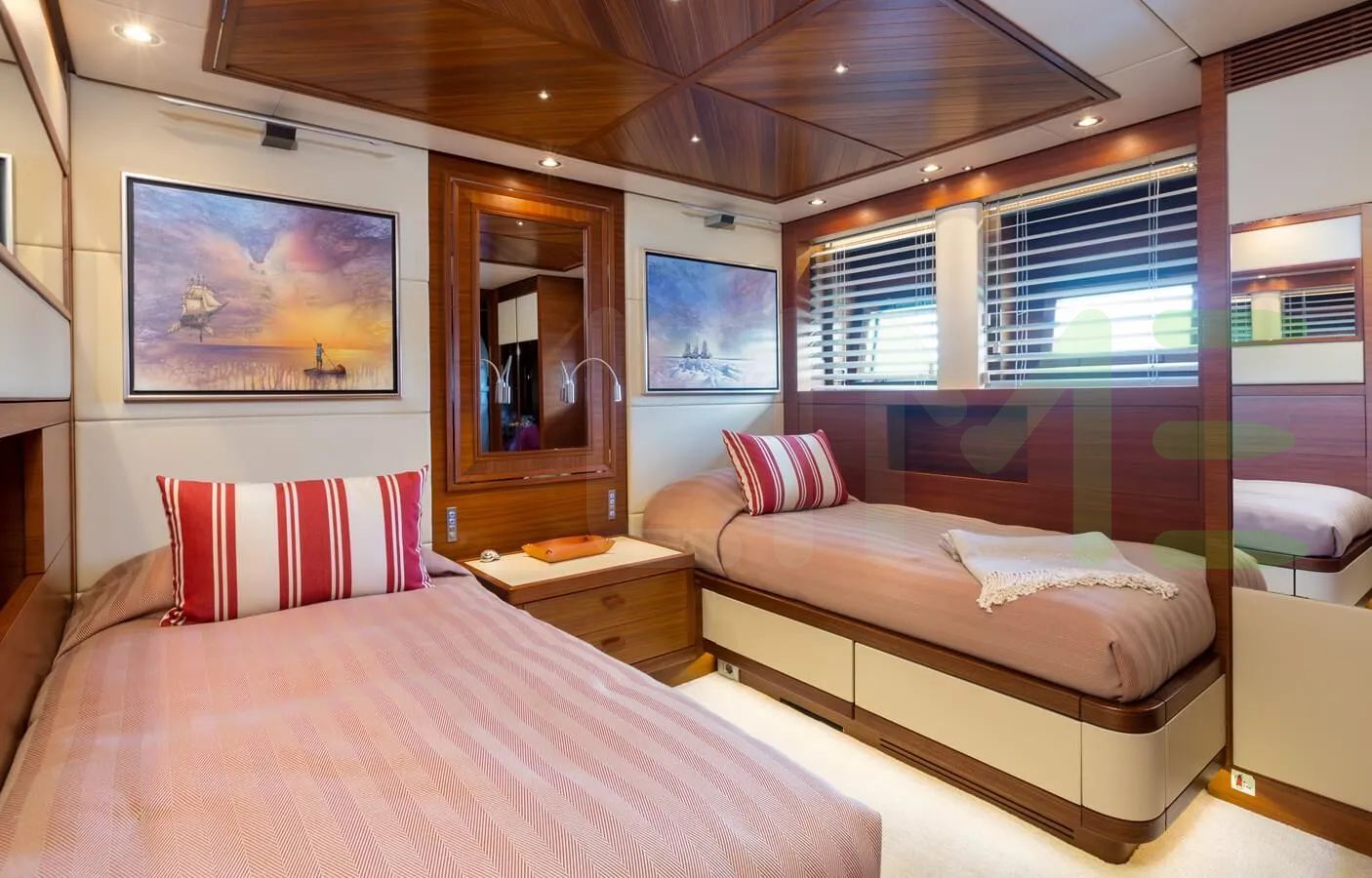 - Side balconies create a peaceful setting to enjoy at anchor