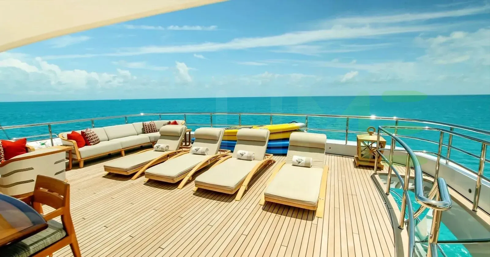 - Well-appointed sundeck with jacuzzi, bar, lounge area and shaded dining