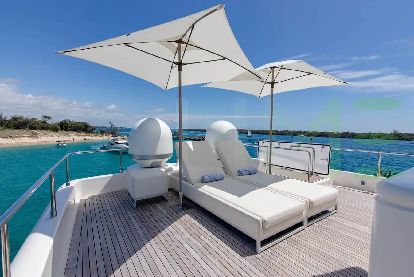 Her features include underwater lights, deck jacuzzi, WiFi and air conditioning.