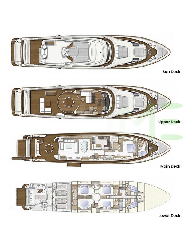Request plans that include the layout of staterooms, guest areas, and outdoor spaces, as well as crew quarters and work areas.