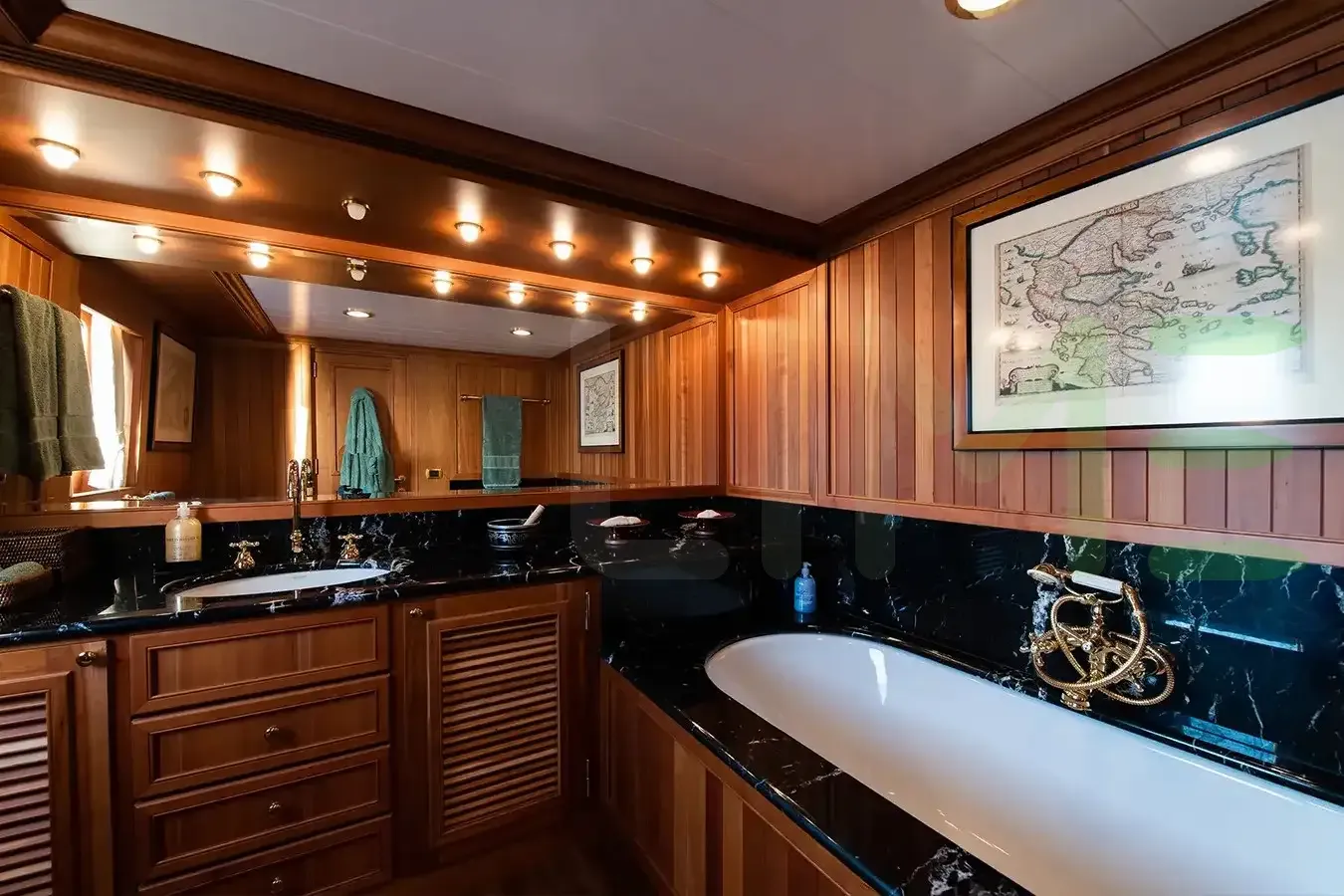 Measuring in at a length of 237' (72.25m) and boasting a beam of 38' 9" (11.8m), BLEU DE NIMES's grandeur is matched only by her spaciousness. Her draft of 11' 4" (3.46m) allows for an interior volume of 1,637 GRT (gross registered tons) which contributes to her exceptional performance on the open ocean.