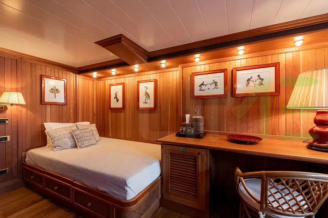 The styling of the BLEU DE NIMES yacht features exterior design by PentaNed Shipyard Ltd. and interior design by Pier Vittorio Cerruti. Up to 28 guests can be accommodated on board the superyacht BLEU DE NIMES in 13 staterooms. BLEU DE NIMES also has accommodations for 23 crew members, including the yacht’s captain.