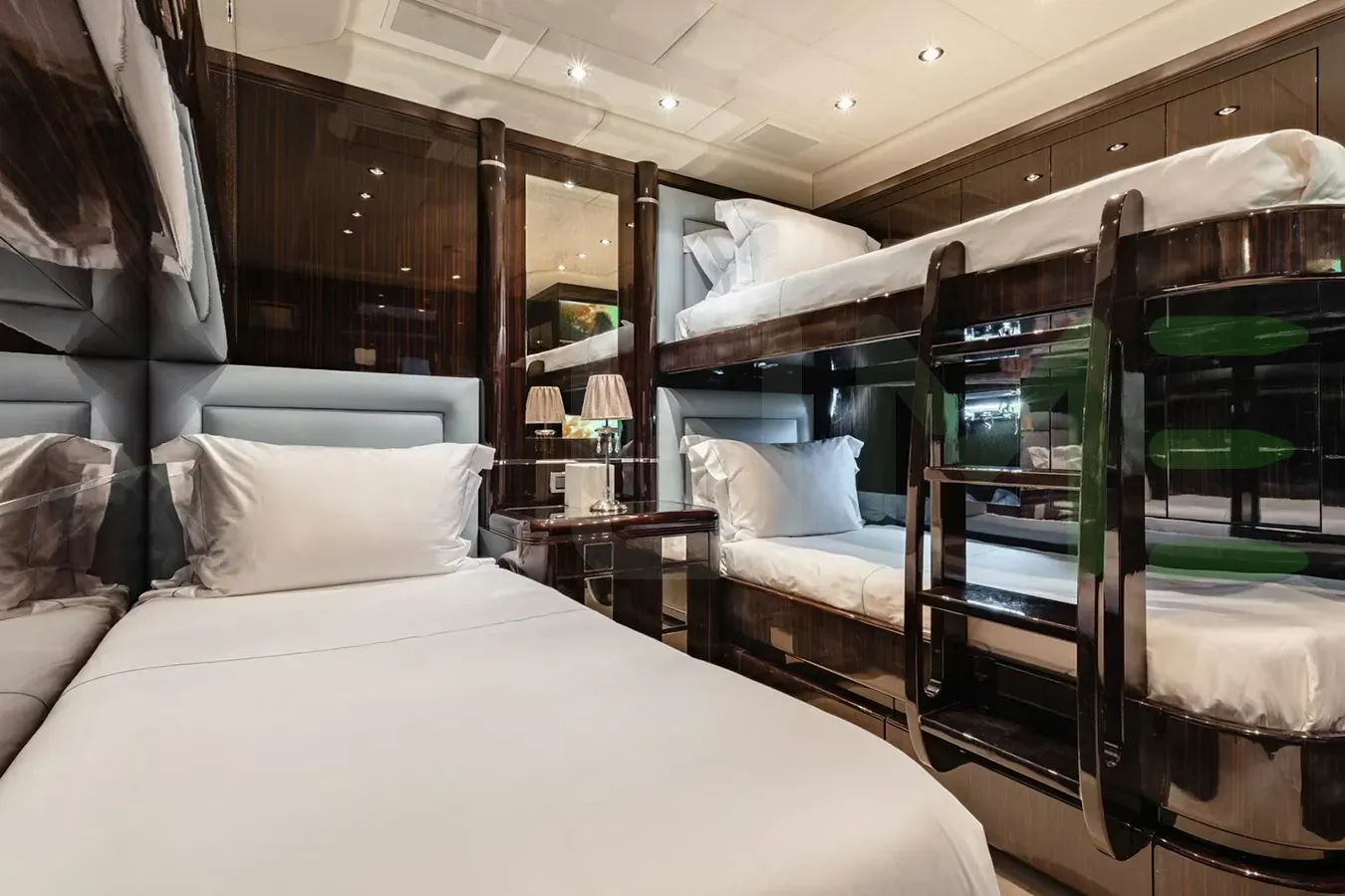 The styling of the BLUE AZUR yacht features exterior design by Stefano Righini Design and interior design by Earlcrown. Up to 12 guests can be accommodated on board the superyacht BLUE AZUR in 5 staterooms. BLUE AZUR also has accommodations for 7 crew members, including the yacht’s captain.