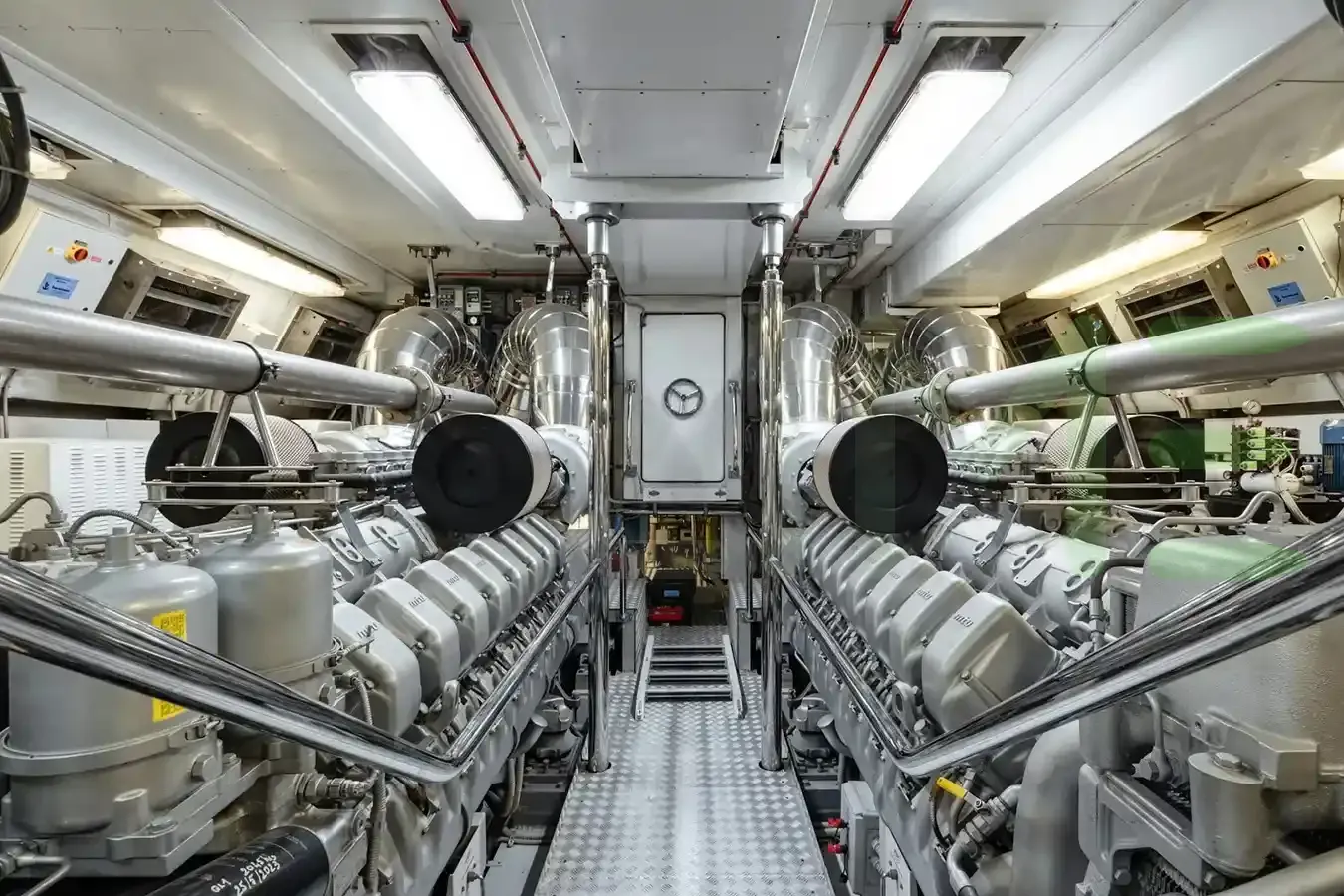 Powered by two MTU main engines, each generating 2,721 horsepower, for a total combined output of 5,442 horsepower. Notably, the BLUE AZUR yacht is one of 4,366 yachts greater than 65’(19m) with MTU engines.
