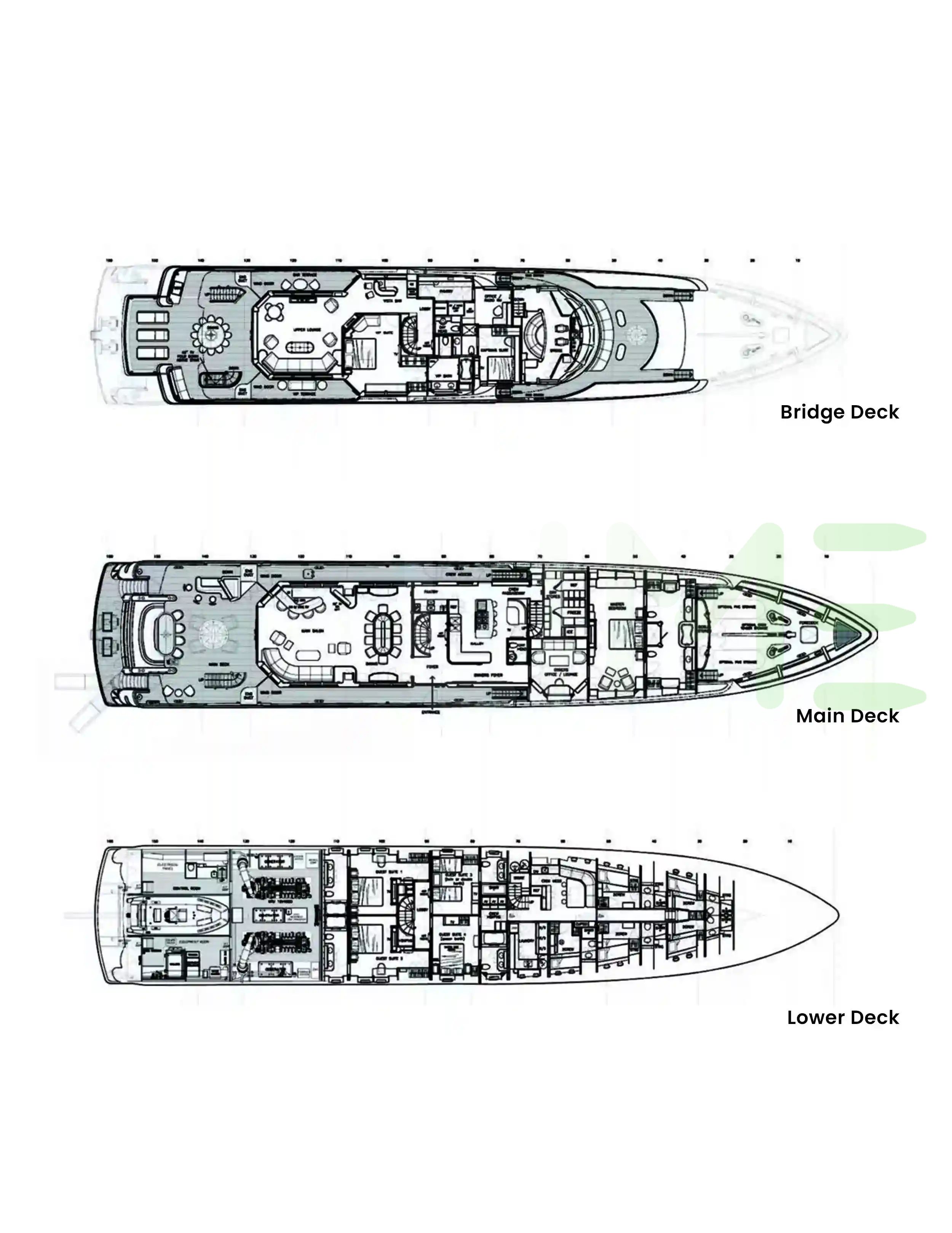 Request plans that include the layout of staterooms, guest areas, and outdoor spaces, as well as crew quarters and work areas.
