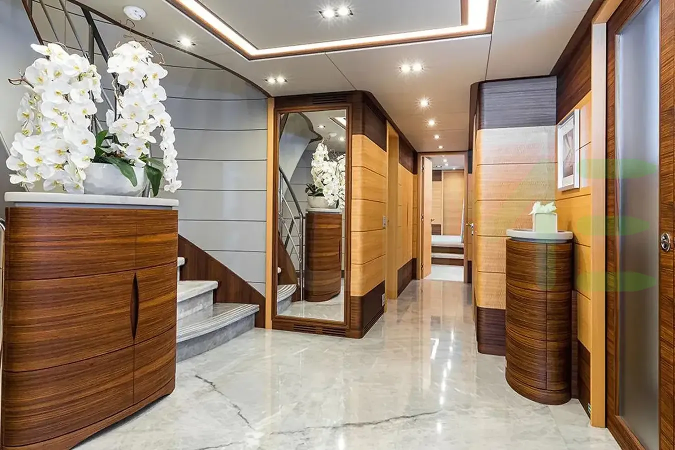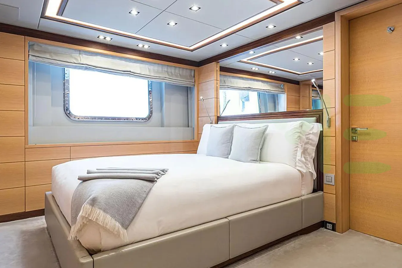 Up to 10 guests can be accommodated on board the superyacht BOMBAY in 5 staterooms. BOMBAY also has accommodations for 11 crew members, including the yacht’s captain.