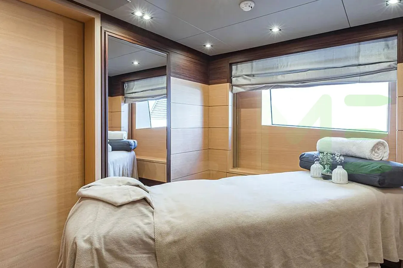 Her features include beauty salon, beach club and air conditioning.