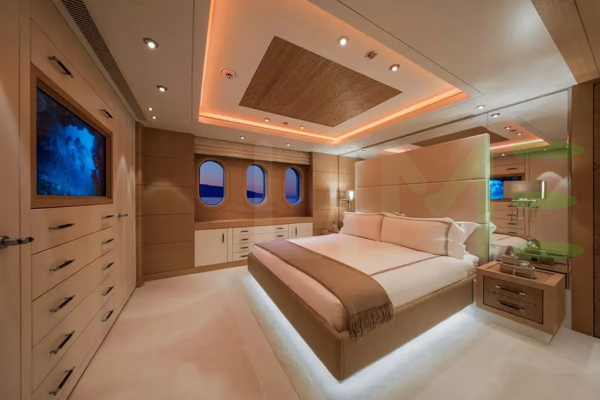 Her features include a movie theatre, gym, deck jacuzzi, WiFi and air conditioning.