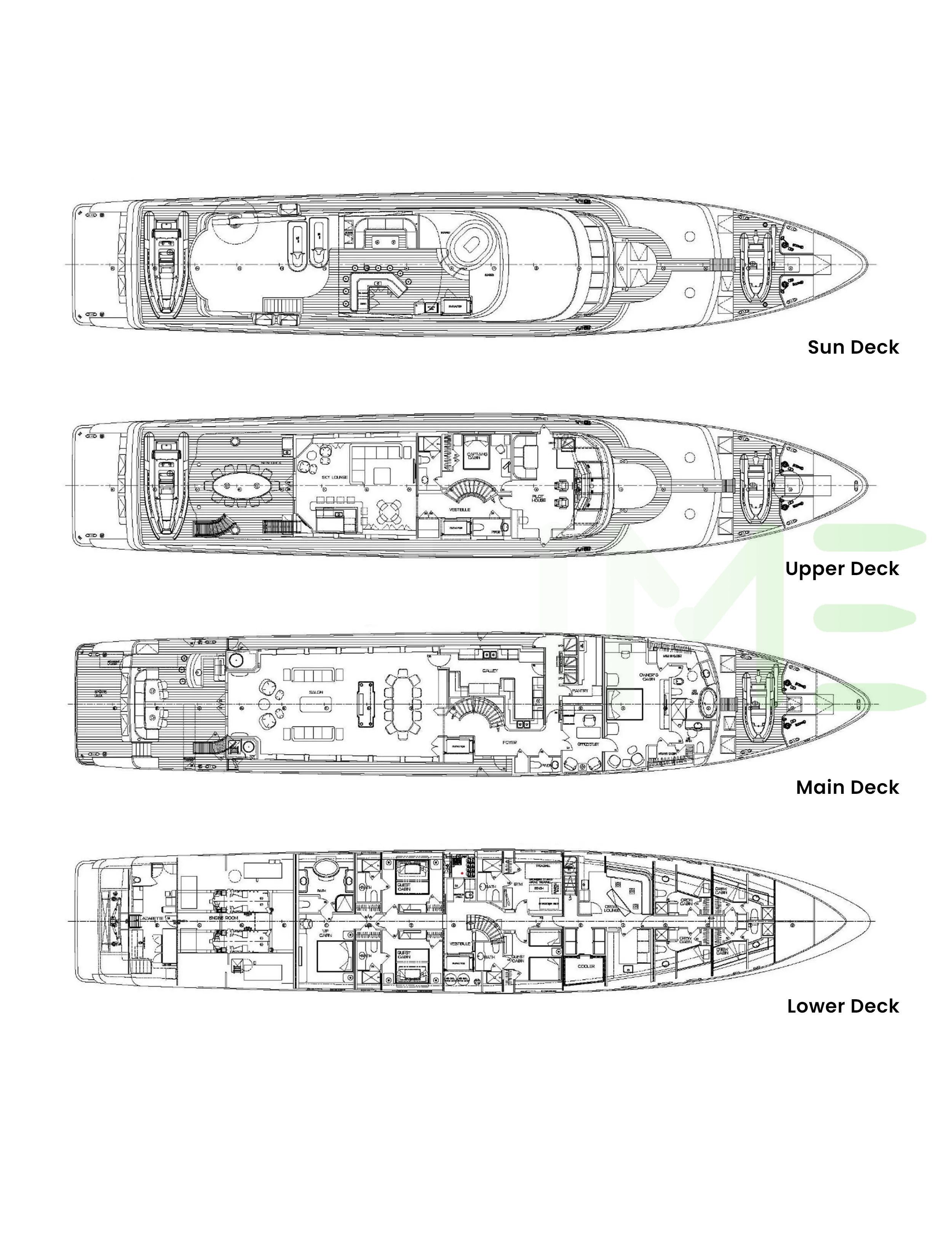 Request plans which include the layout of staterooms, guest areas, and outdoor spaces, as well as crew quarters and working spaces.
