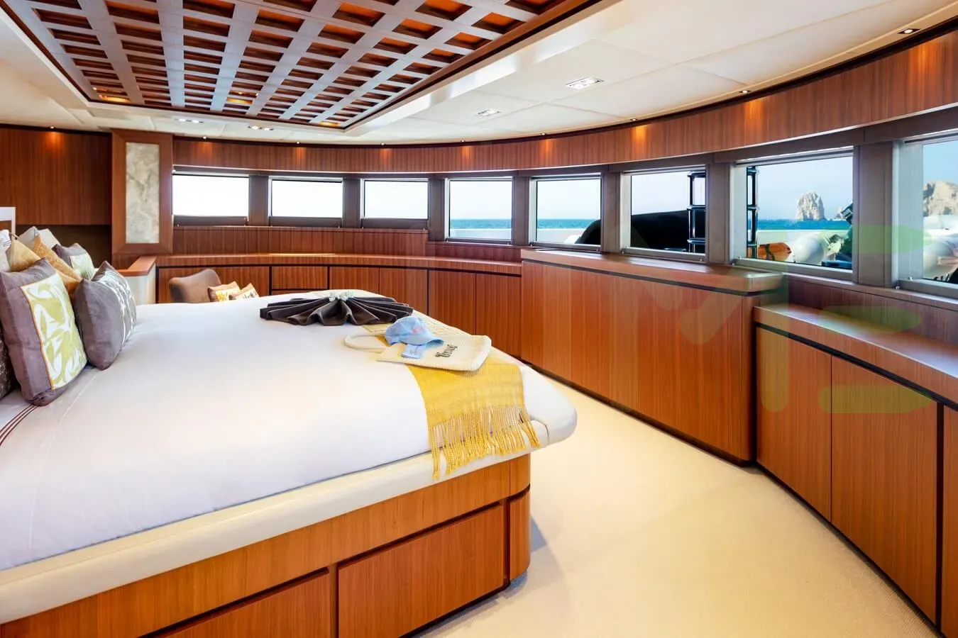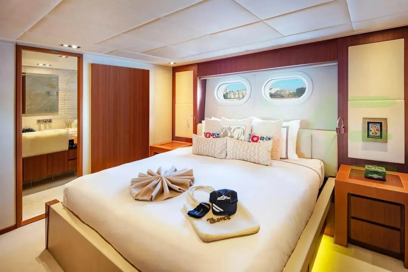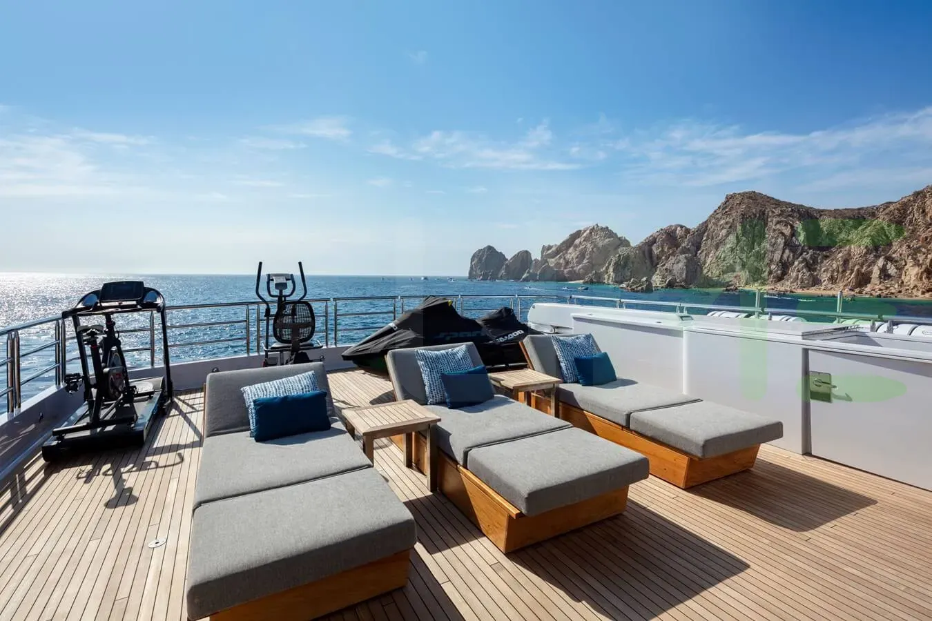 Her features include a gym, deck jacuzzi and air conditioning.
