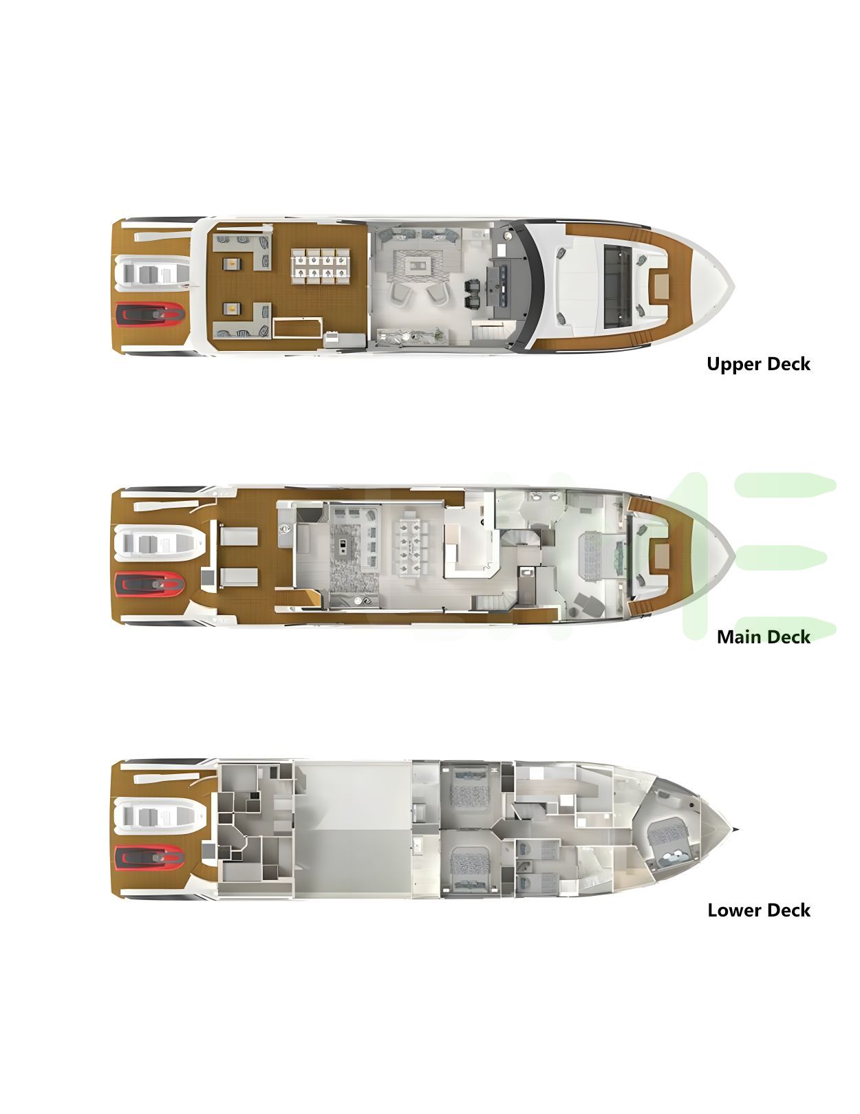 Request plans that include the layout of staterooms, guest areas, and outdoor spaces, as well as crew quarters and work areas.