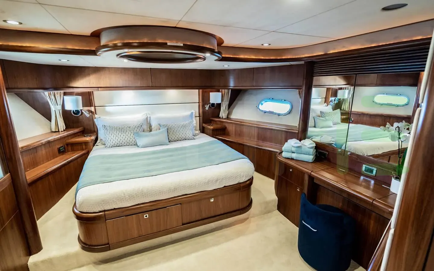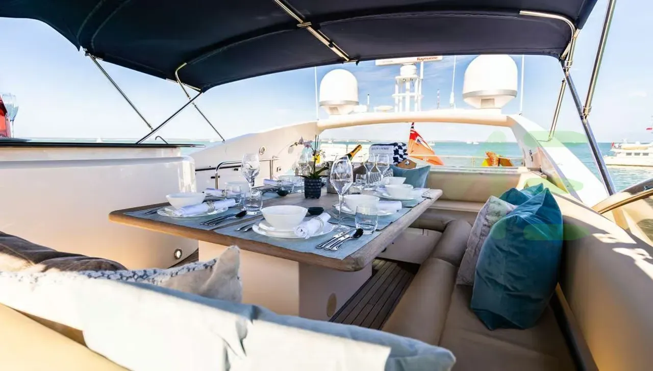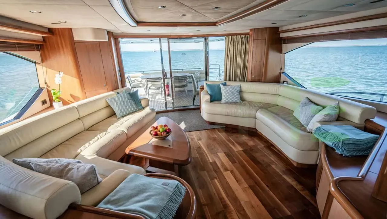 - Large flybridge with full sunpad spread