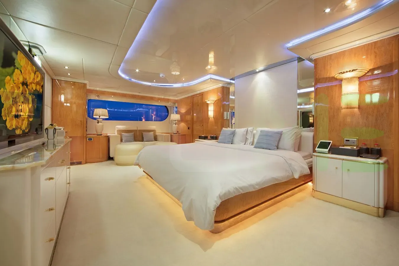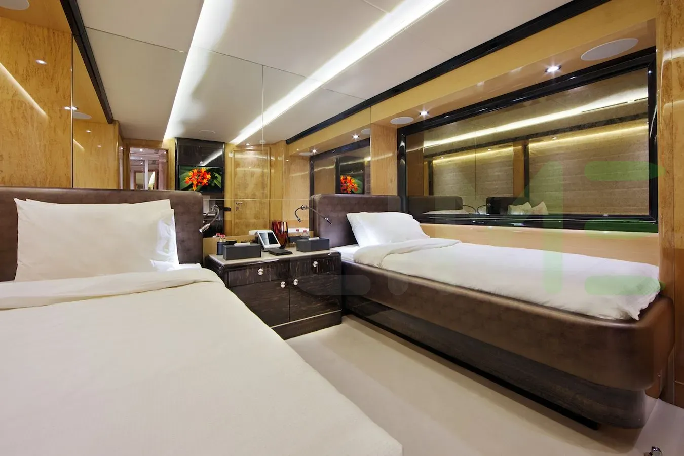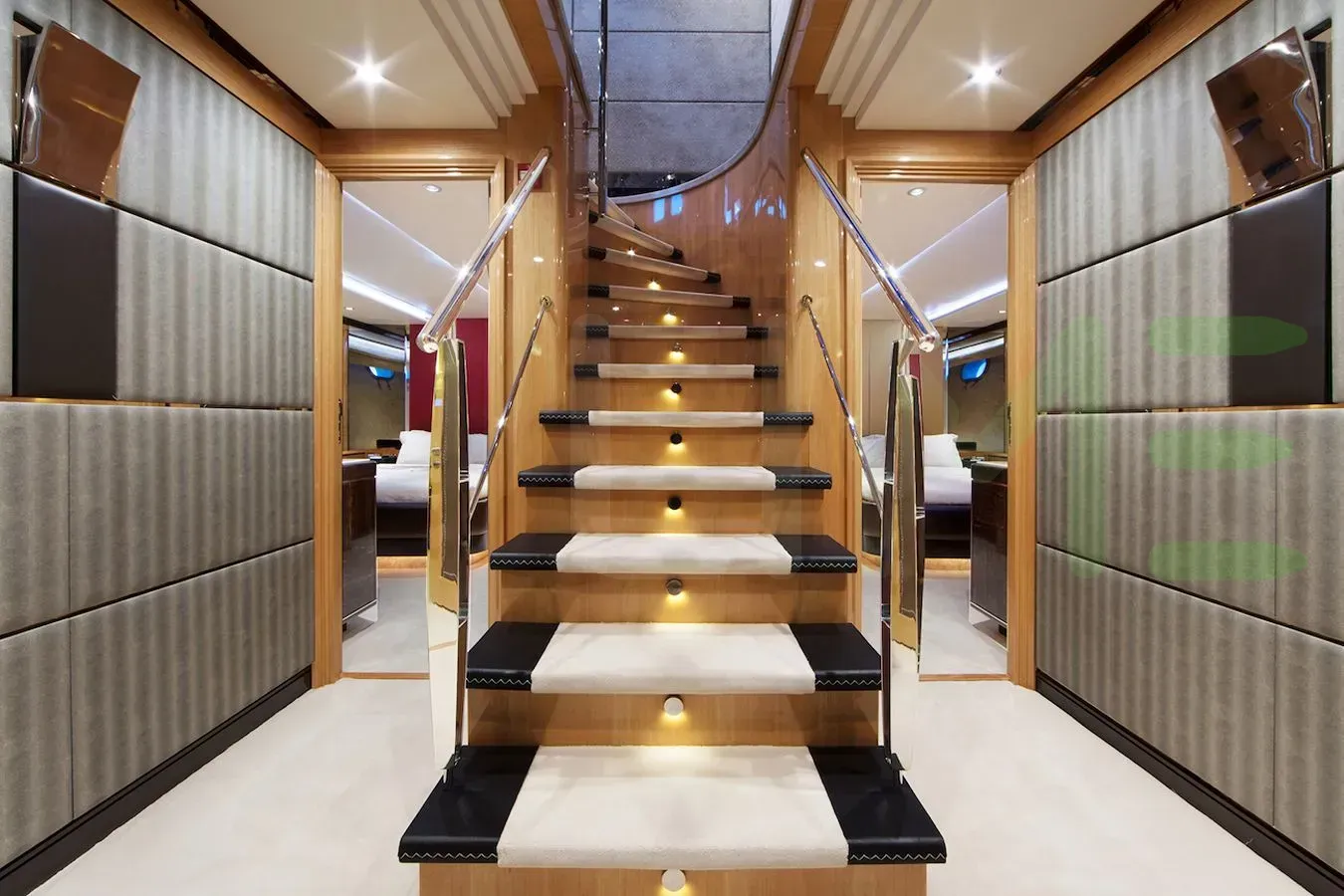 The styling of the CODE 8 yacht features exterior design by Fratelli Benetti and interior design by Zuretti Interior Design, Adriel Design, Inc.. Up to 12 guests can be accommodated on board the superyacht CODE 8 in 6 staterooms. CODE 8 also has accommodations for 10 crew members, including the yacht’s captain.