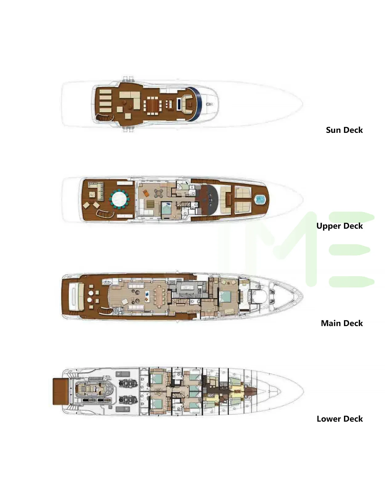 Request plans that include the layout of staterooms, guest areas, and outdoor spaces, as well as crew quarters and work areas.