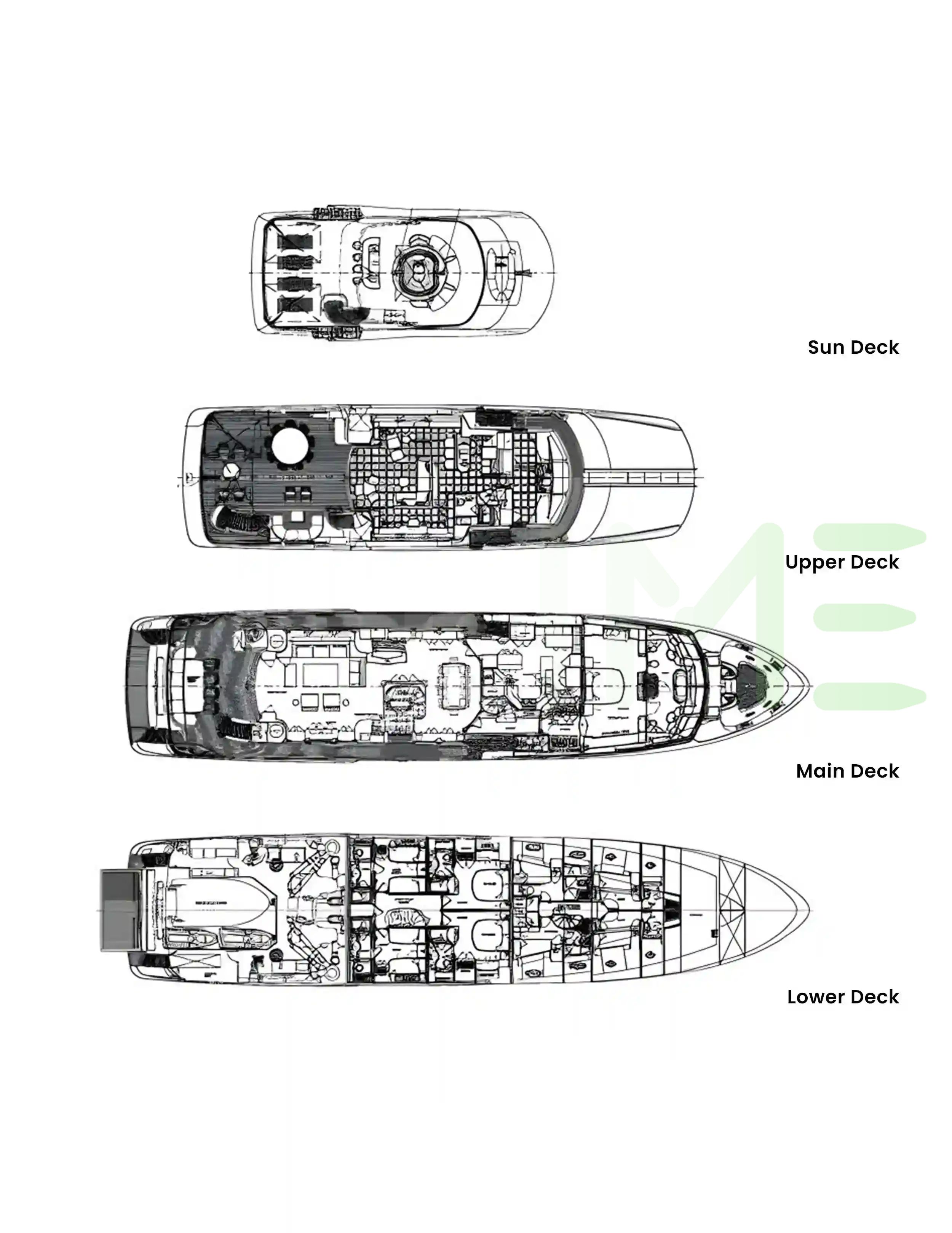 Request plans that include the layout of staterooms, guest areas, and outdoor spaces, as well as crew quarters and work areas.