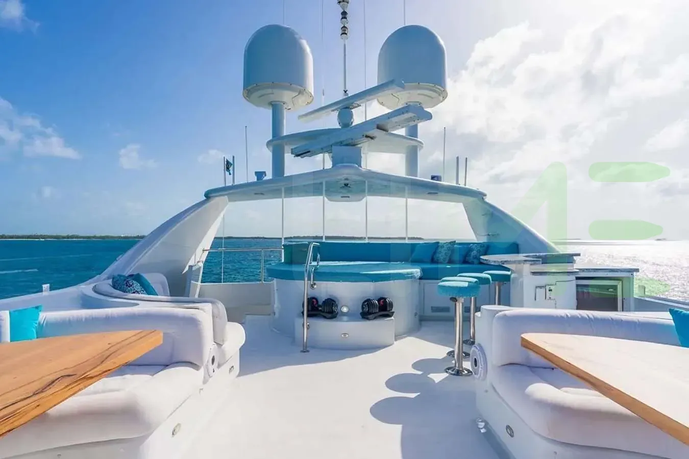 On your charter, you'll find plenty to keep you busy and entertained such as a gym with all the latest equipment to maintain your fitness routine. Soak up the bubbles in style in the deck jacuzzi.